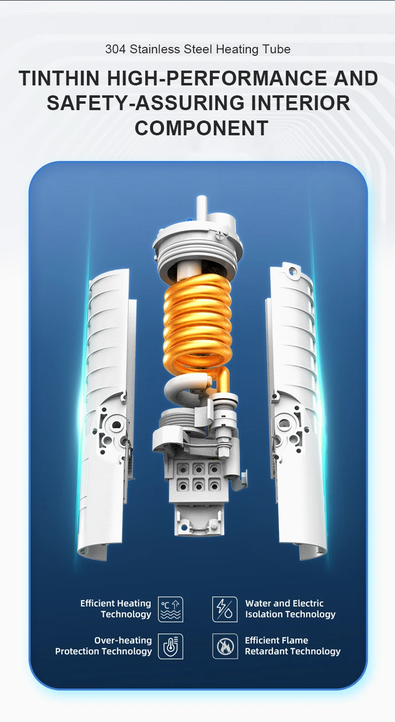 Multiple security protection Isolated Heating Technology. Electrostatic protection. High temperature resistance. IPX4 Waterproof.