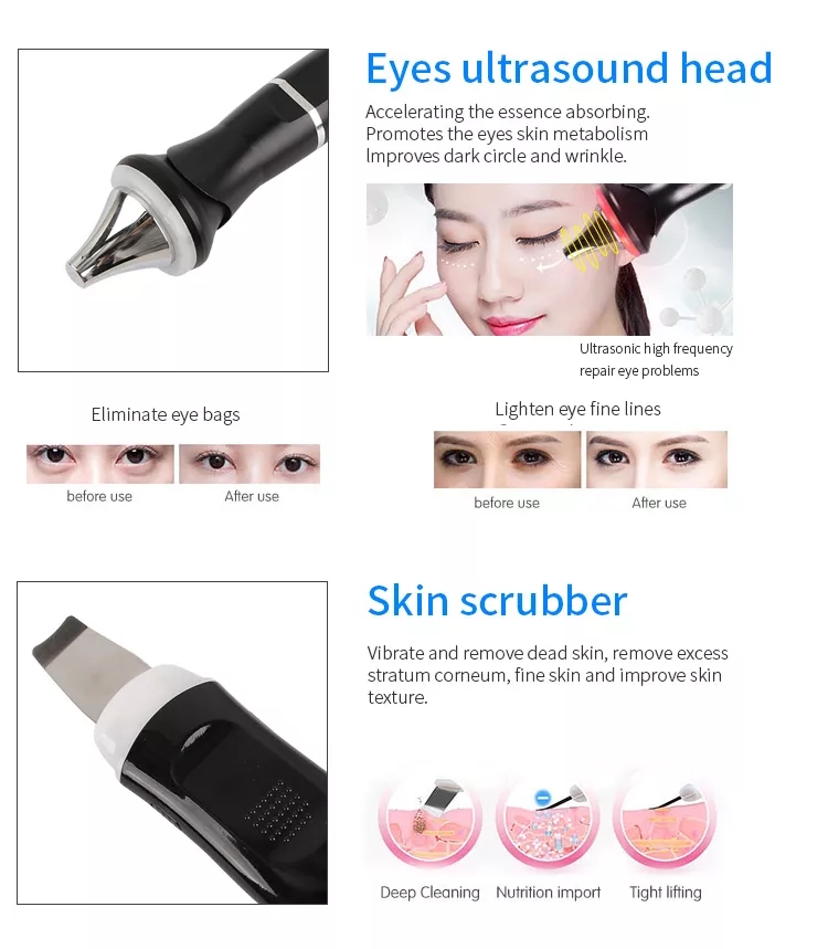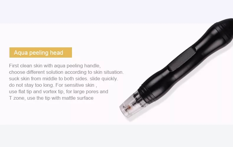 Сначала чистая кожа с ручкой шелушения Аква, выбирает различное решение согласно ситуации кожи. Сосать кожу с середины на обе стороны, быстро скользить, не задерживать слишком долго. Для чувствительной кожи Используйте плоский наконечник и вихревой наконечник, для больших пор и цоне Используйте наконечник с матовой поверхностью.
