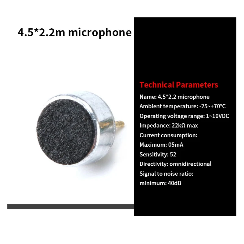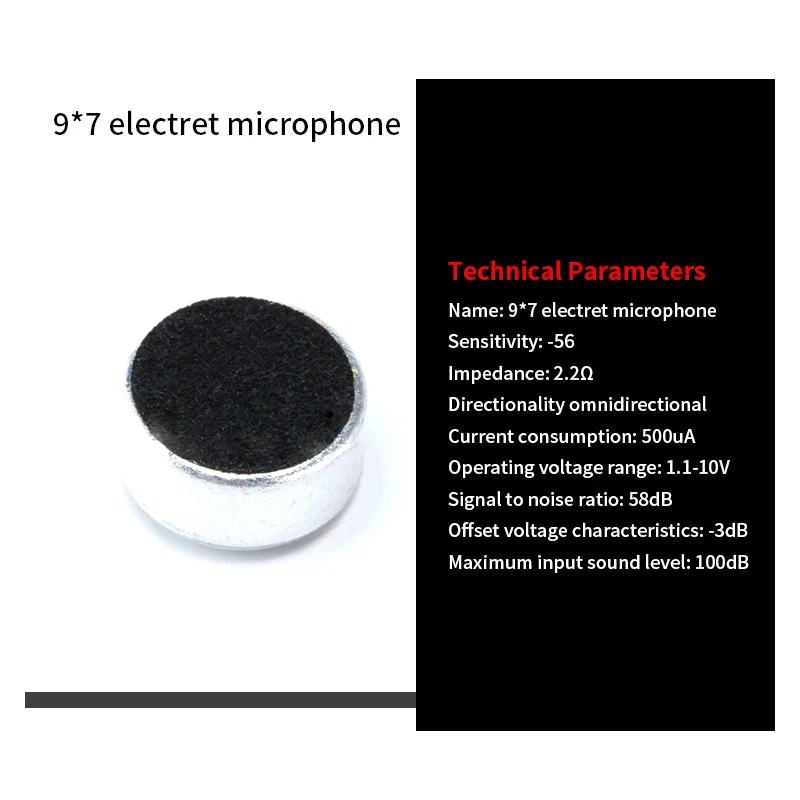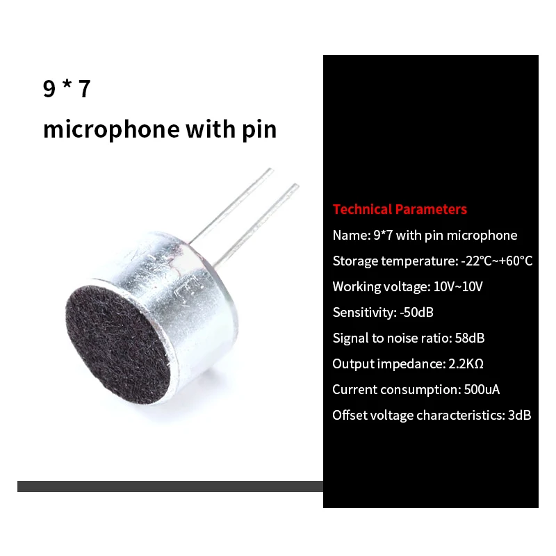 (1) 6*2,2 мм Mini DIP-микрофон (2) 4013 SMD-микрофон (3) 4,5*2,2 мм DIP-микрофон 52 дБ (4) 4*1,5 мм микрофон, -58 ± 3 дБ с кабелем 5,5 CM(5) Микрофон 9*7 мм микрофон (56 дБ)(6) Микрофон 6*5 мм микрофон (52 дБ)(7) DIP Мини-микрофонная головка 4*1,5 мм (8) DIP-микрофон 9*7 мм микрофон 50 дБ (9) DIP-микрофон 6*5 мм 56 дБ