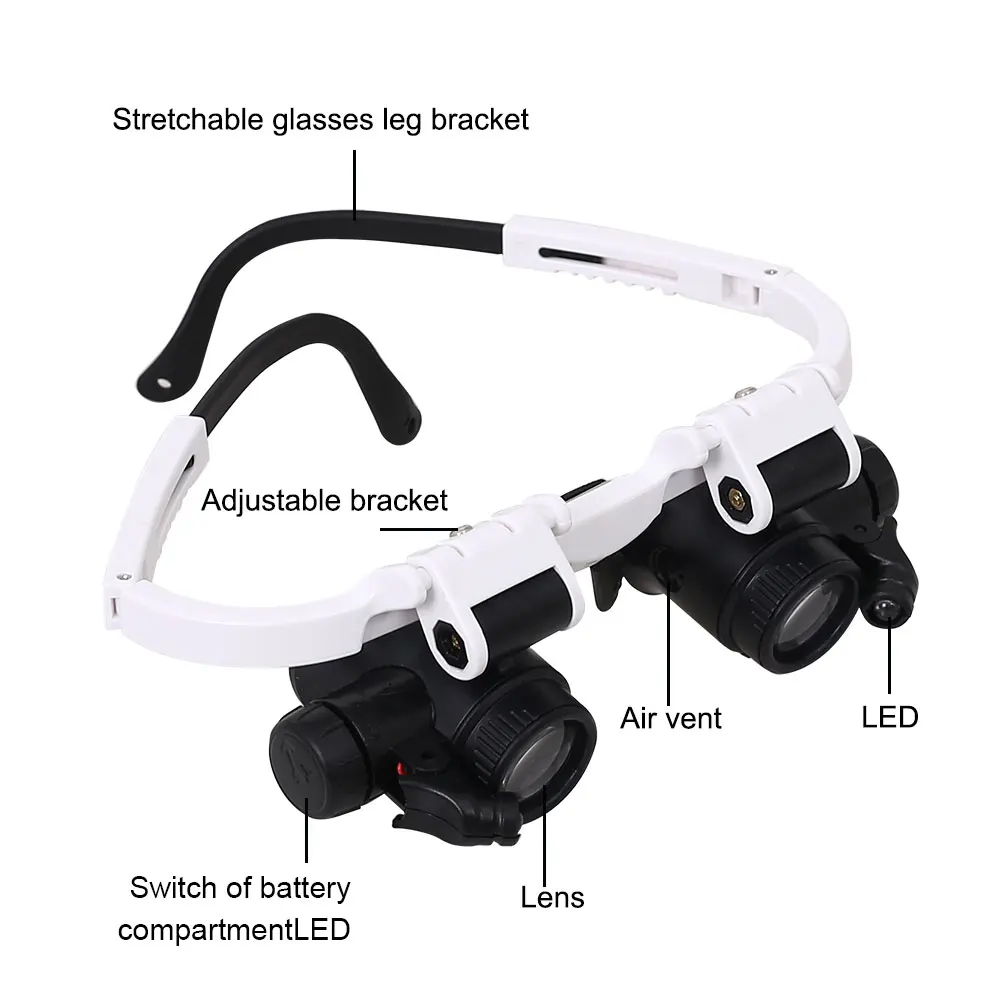 Микроскоп UYANGG с креплением на голову, телескопическая лупа для ювелирных изделий, увеличительное стекло 8x 15x 23x с 2 светодиодами, лупа, лупа, инструмент для ремонта