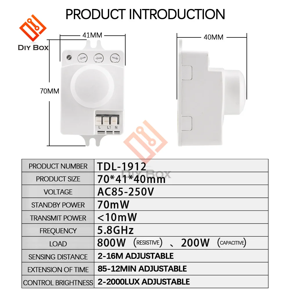 Номер модели 5.8G microwave sensor switch 220V intelligent energy-saving control ra