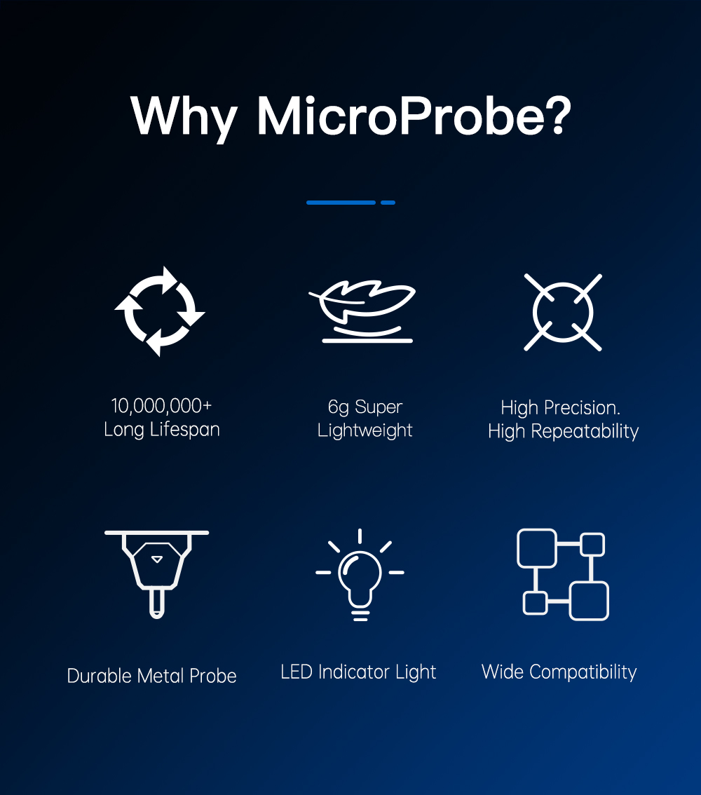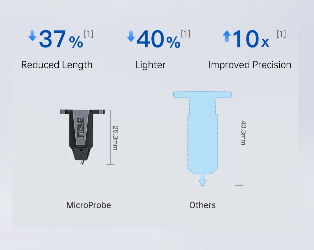 Сверхлегкий микрозонд MicroProbe-необходимое обновление для вашего принтера. При весе всего 6 г он почти не добавляет веса экструдеру, но обеспечивает высокую точность выравнивания.Уменьшенная длина