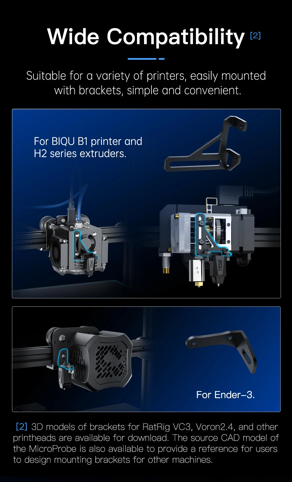 [2] Доступны для скачивания 3D модели кронштейнов для RatRig VC3,Voron2.4 и других печатающих головок. Исходная модель CAD MicroProbe также доступна для использования в качестве справочника для проектирования монтажных кронштейнов для других машин.Подходит для всех поверхностей печати10,000,000+