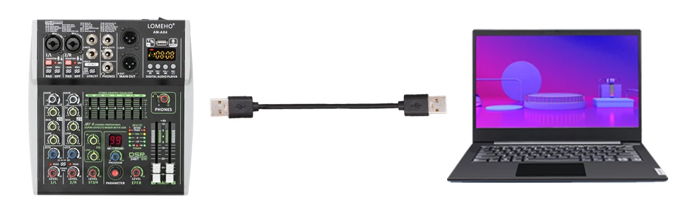 Покупатель загружает программное обеспечение для воспроизведения музыки и выбирает микшер в качестве динамика. Затем компьютерный музыкальный сигнал поступит в микшер.