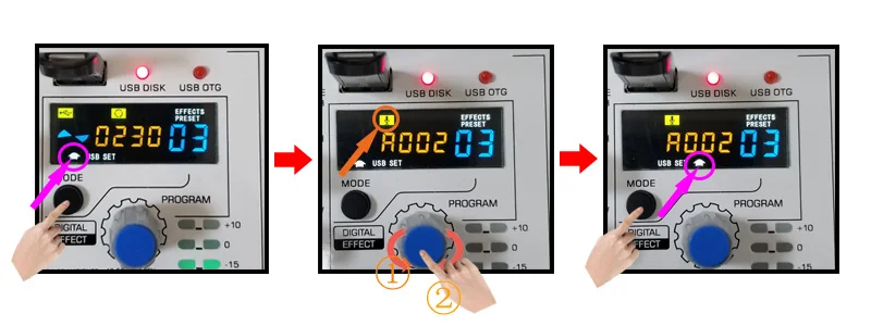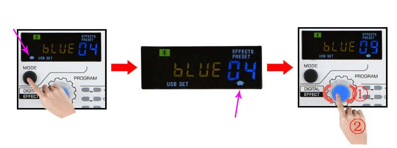 Поверните ручку «EFF», чтобы отрегулировать уровень эффекта.