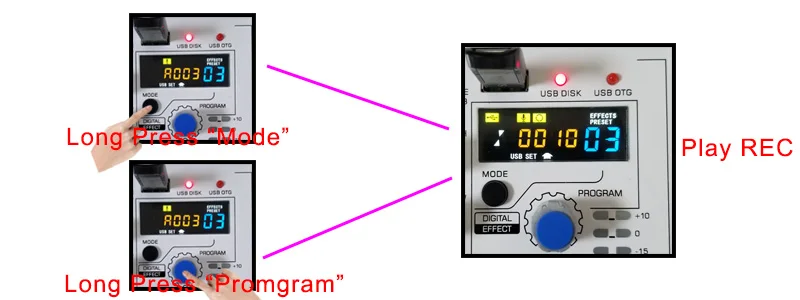 1) Pre/Next: Поверните «Program», чтобы воспроизвести песню Pre/Next.