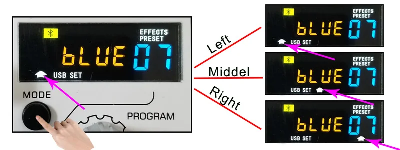 Нажмите кнопку «MODE», белая стрелка переместится влево/среднюю/правую позицию.