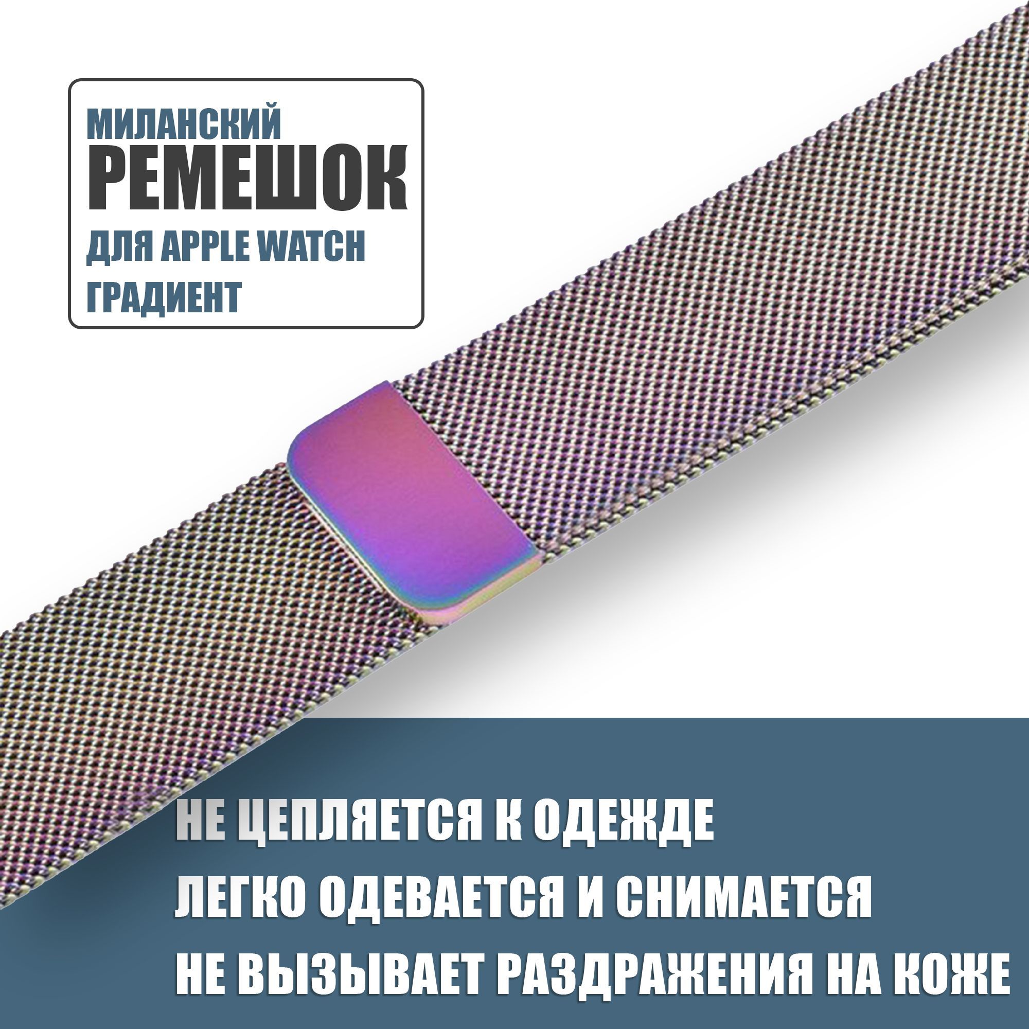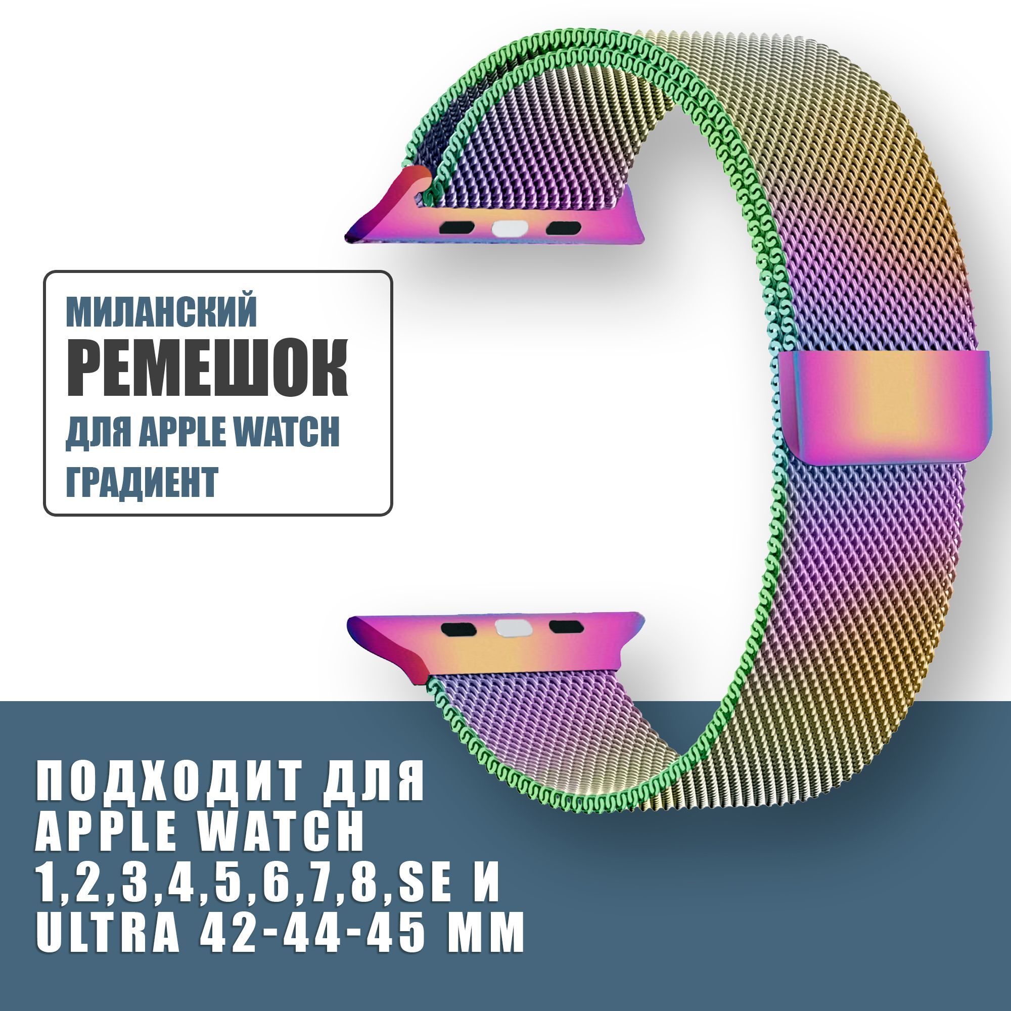 Описание: Миланский ремешок для Apple Watch 42mm 44mm 45mm 49mm 1- 8, SE и ULTRA Металлический / стальной браслет Эпл вотч 42мм 44мм 45мм 49мм, Миланская петля, Перламутровый, разноцветный, градиент, хамелеонШикарный ремешок «Миланская петля» для смарт часов Apple Watch в насыщенной цветовой гамме. Apple Watch ворвались в жизнь многих людей и стали очень полезным аксессуаром и предметом стиля. Что бы сделать ваш Apple Watch /эппл вотч/ более индивидуальным мы предлагаем вам приобрести ремешок для ваших часов. Миланская петля как аксессуар позволит вам выразить свою индивидуальность и добавить как эстетической красоты, так и практической. Благодаря проверенной временем сетчатой структуре плетения этот ремешок обладает исключительной гибкостью, которая позволяет гаджету превосходно сидеть на руке. Удобство эксплуатации обеспечивает инновационная магнитная застёжка ремешка, которая дает возможность оптимально подогнать аксессуар для Smart Watch по размеру абсолютно на любую руку. Идеально подходит для всех поколений Apple Watch размера 42 мм, 44 мм, и 45 мм. Сам ремешок является по размеру универсальным.