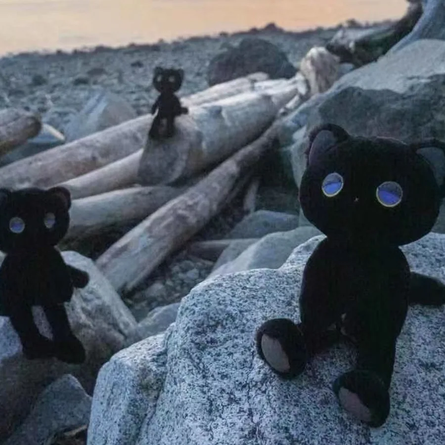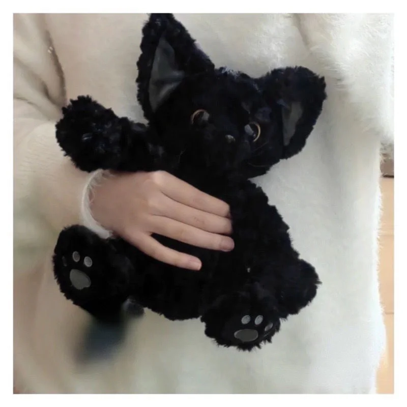 Милая Черная кошка, плюшевая Волшебная кукла, кудрявый Кот, мягкая подушка, мультяшное животное, мягкая кукла, милая девочка, подарок на день рождения