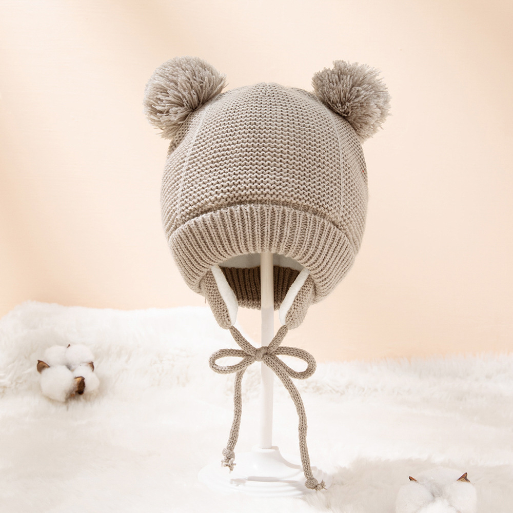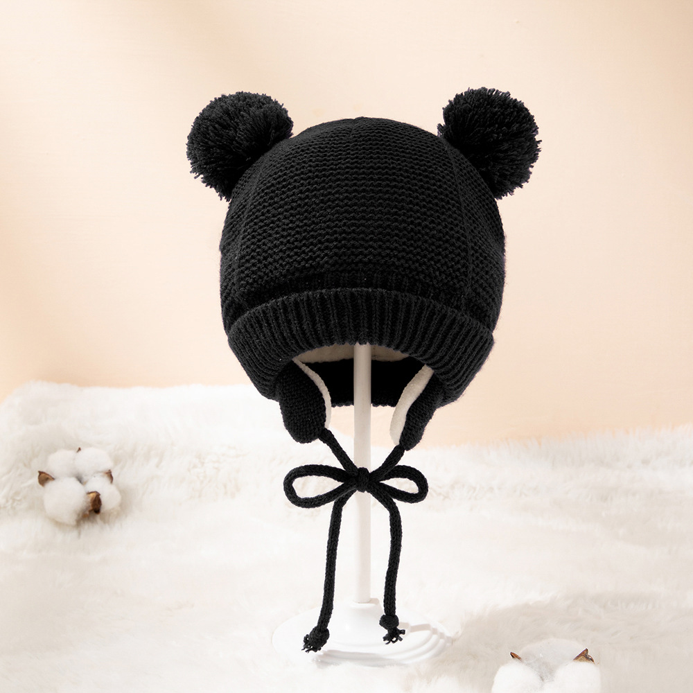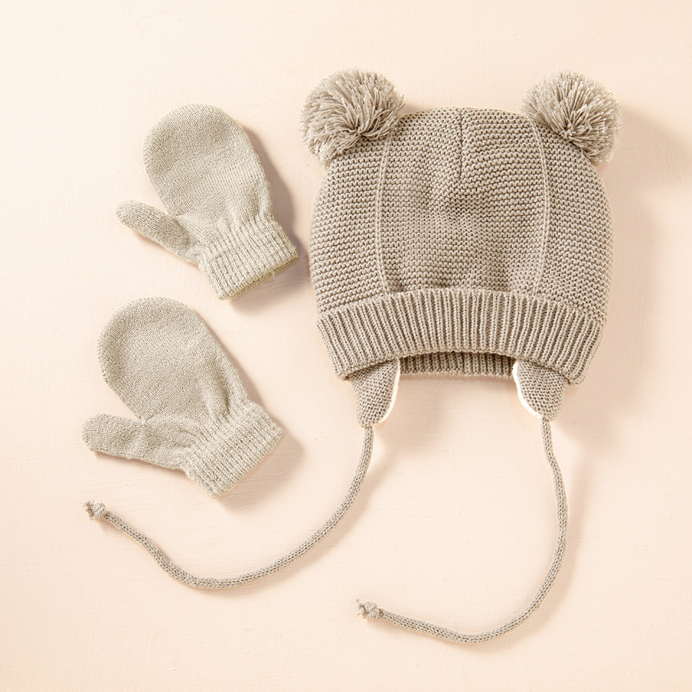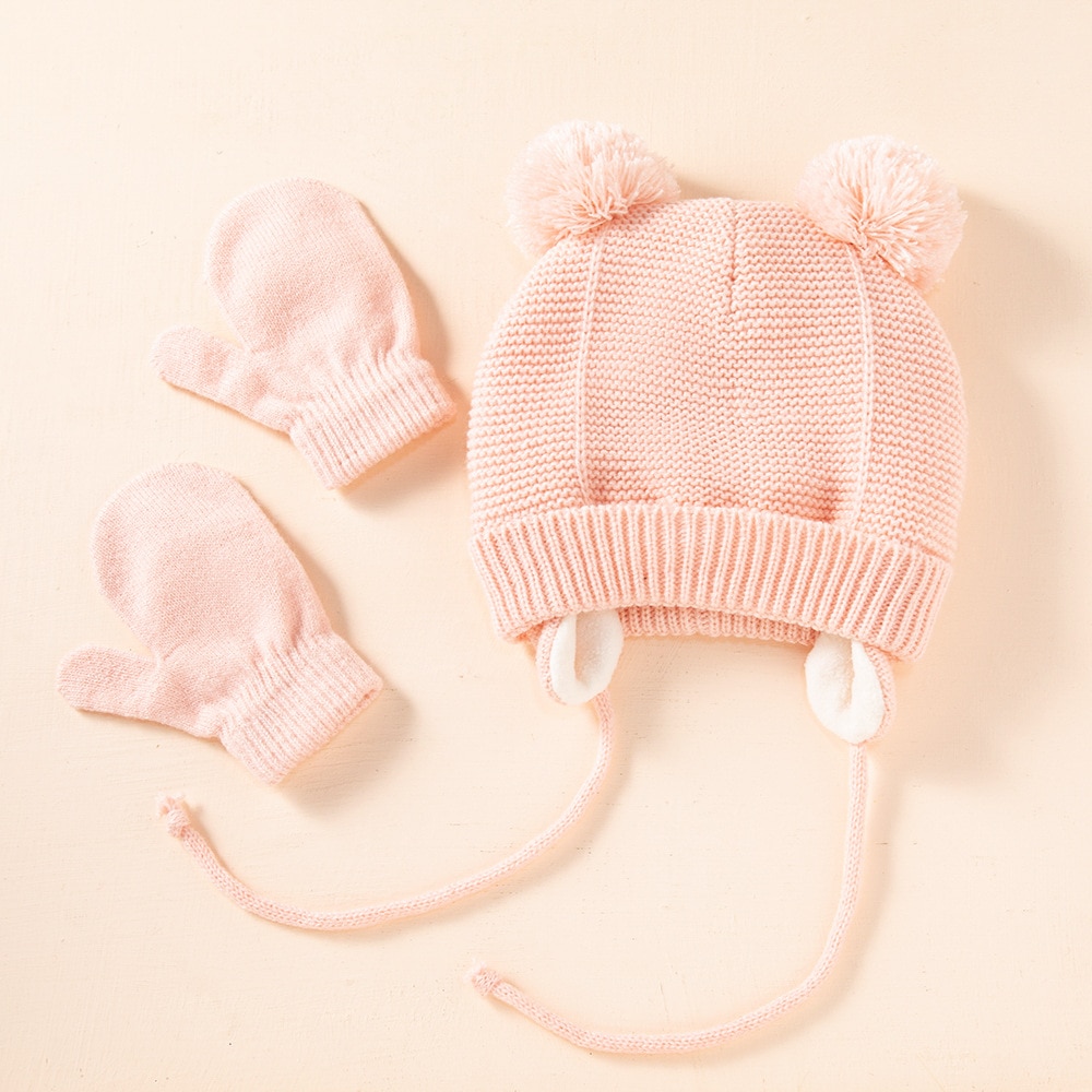Милая вязаная детская шапка с помпоном, плотная Теплая Шапка-бини для девочек и мальчиков, зимняя теплая шапка с ушками, детские перчатки, шапки, шапка, муты для новорожденных