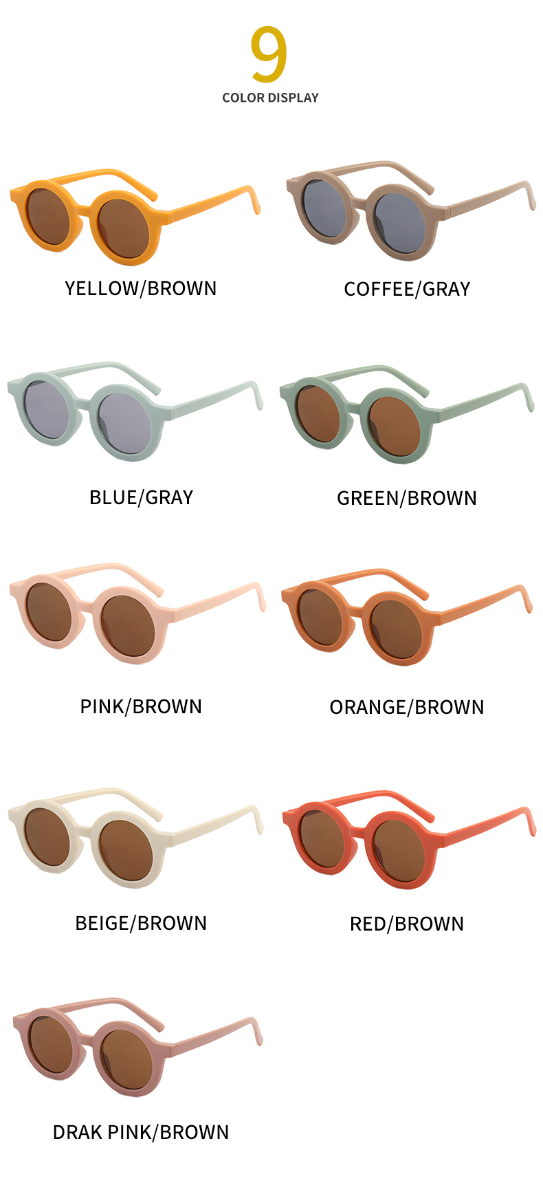 Милые детские солнцезащитные очки, новинка 2021, дизайнерские маленькие круглые Мультяшные детские солнцезащитные очки для мальчиков и детей, 9 цветов, уличные