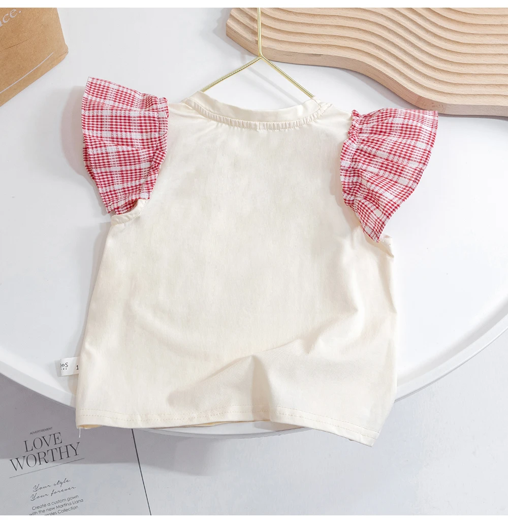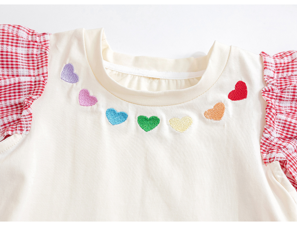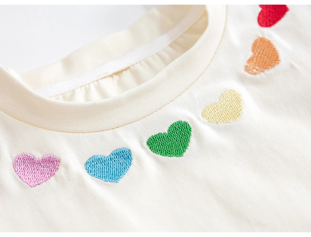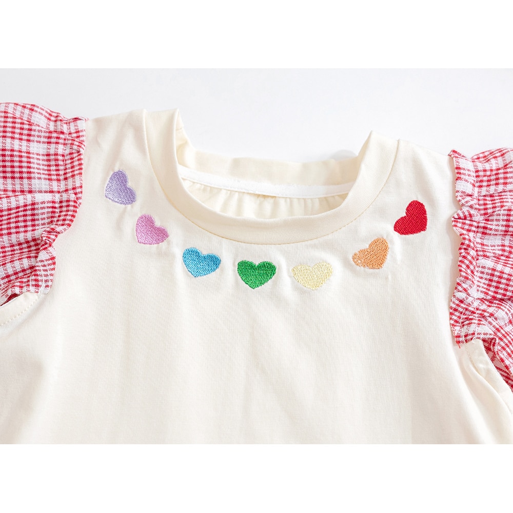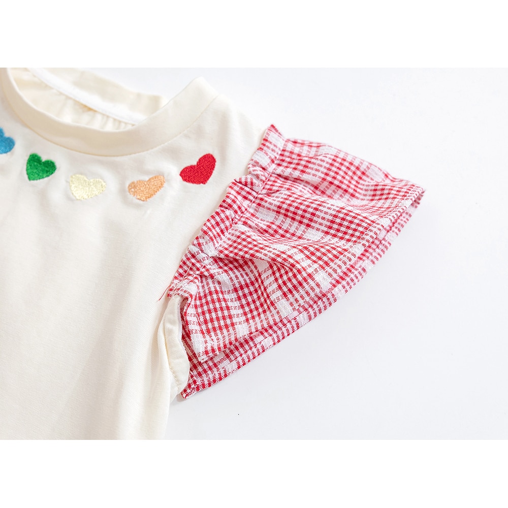 Милые футболки для маленьких девочек с рукавами-мушками, летний пуловер в Корейском стиле с вышивкой в виде сердечек, Детская футболка с коротким рукавом для девочек, топы