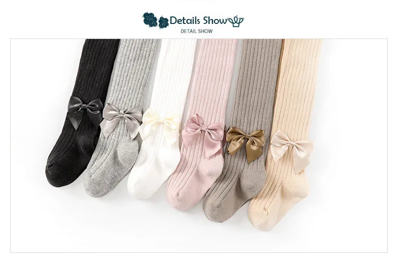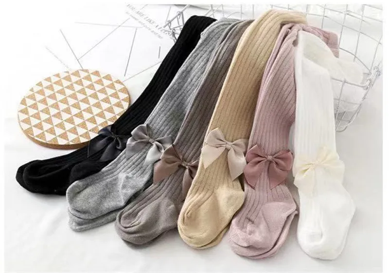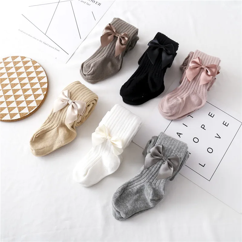 0-6Yrs Children Solid Spring Autumn Tights Soft Cotton Baby Girls Stripe Pantyhose Leggings Kids Infant Bowknot Knitted Tights