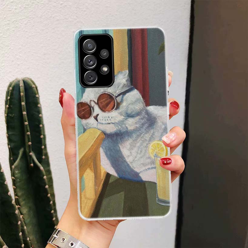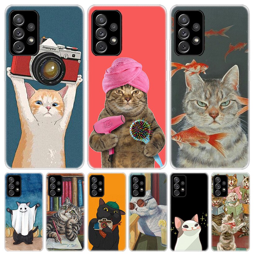 Милые Мультяшные счастливые кошки для Samsung Galaxy A52 A53 A12 A13 A22 A23 A32 A33 чехол для телефона A72 A73 A02S A03S A42 брикет A50S A70S A30S Co