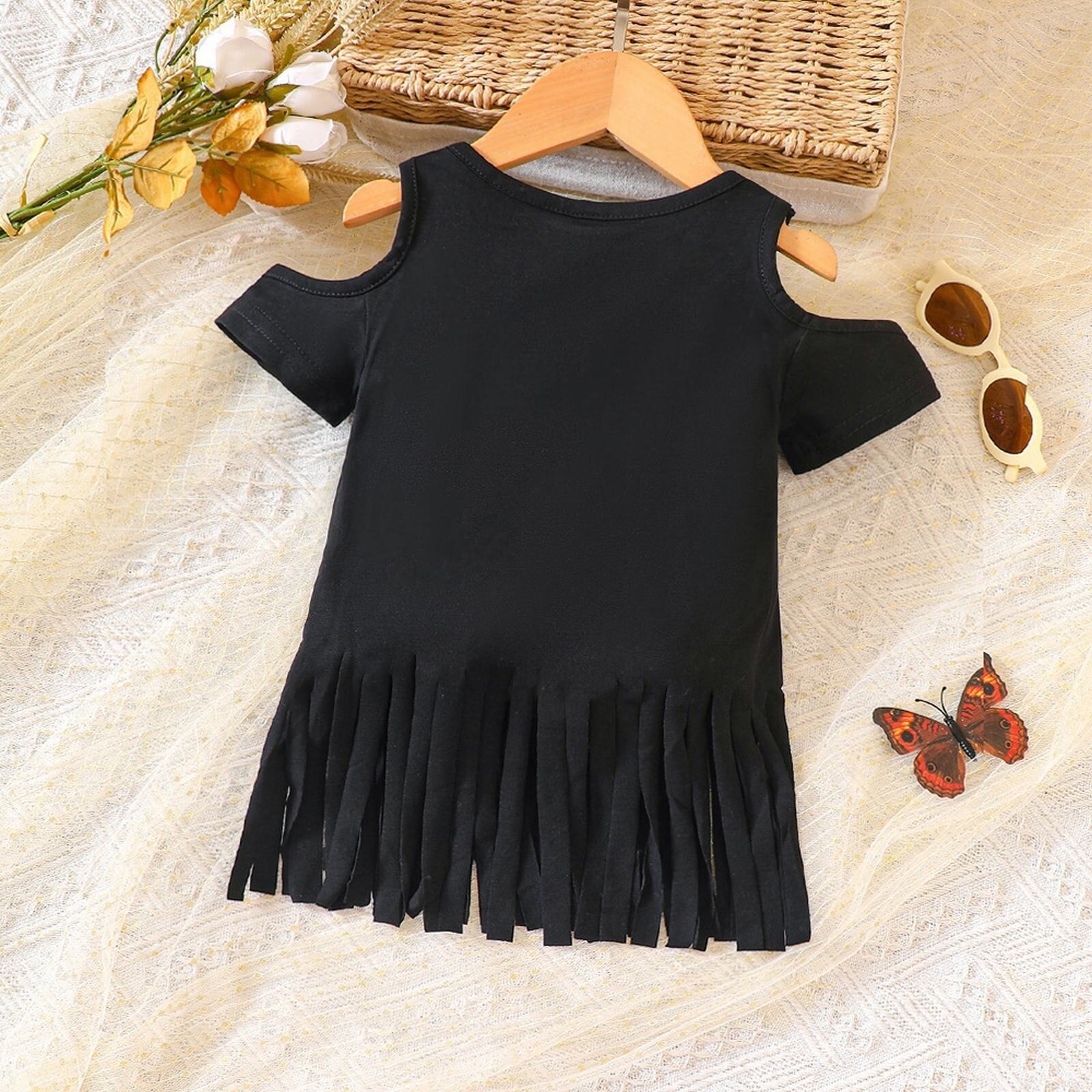 Симпатичные топы с короткими рукавами и принтом, детская одежда, летняя футболка для девочек, футболка с длинными кисточками и совой