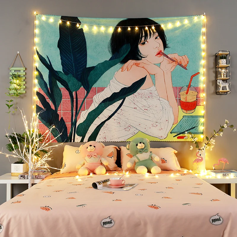 Милый домашний декор, настенный гобелен, аниме, розовый цвет, настенный фон для спальни, Декор, милые модные гобелены для женщин