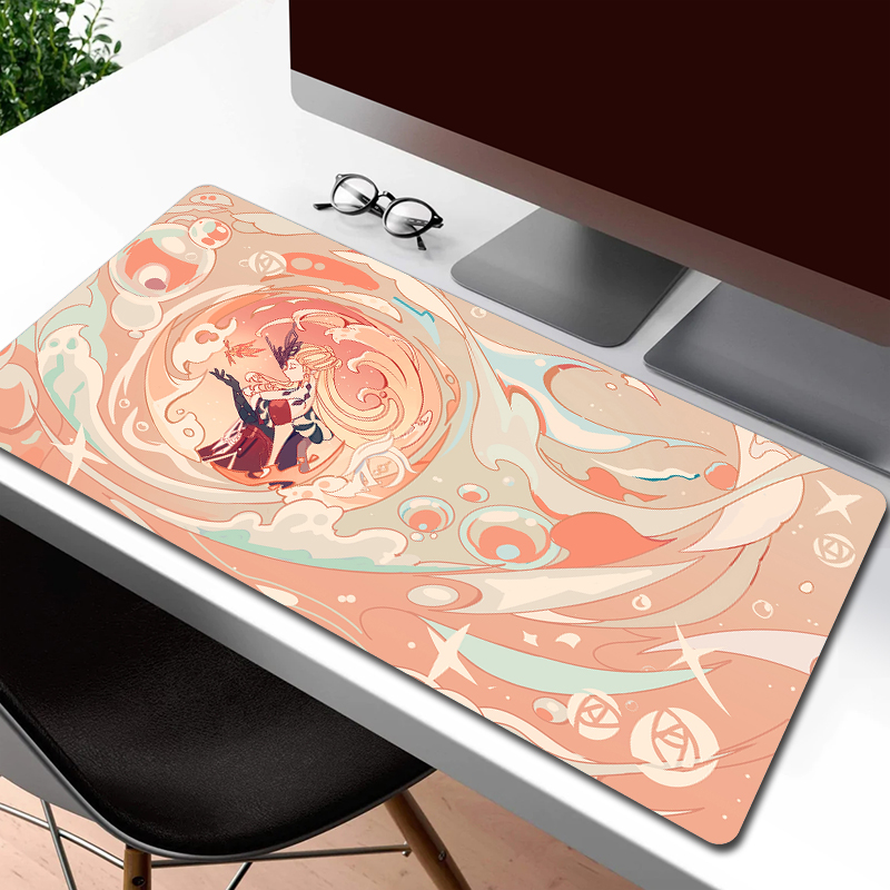 Милый игровой коврик для мыши Genshin Impact Kawaii Большой Коврик для мыши игровой коврик для компьютерной мыши Otaku нескользящий большой коврик для клавиатуры XXL