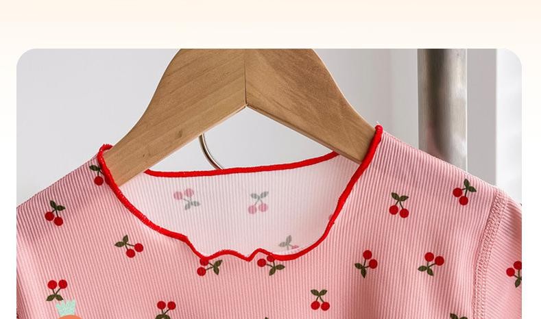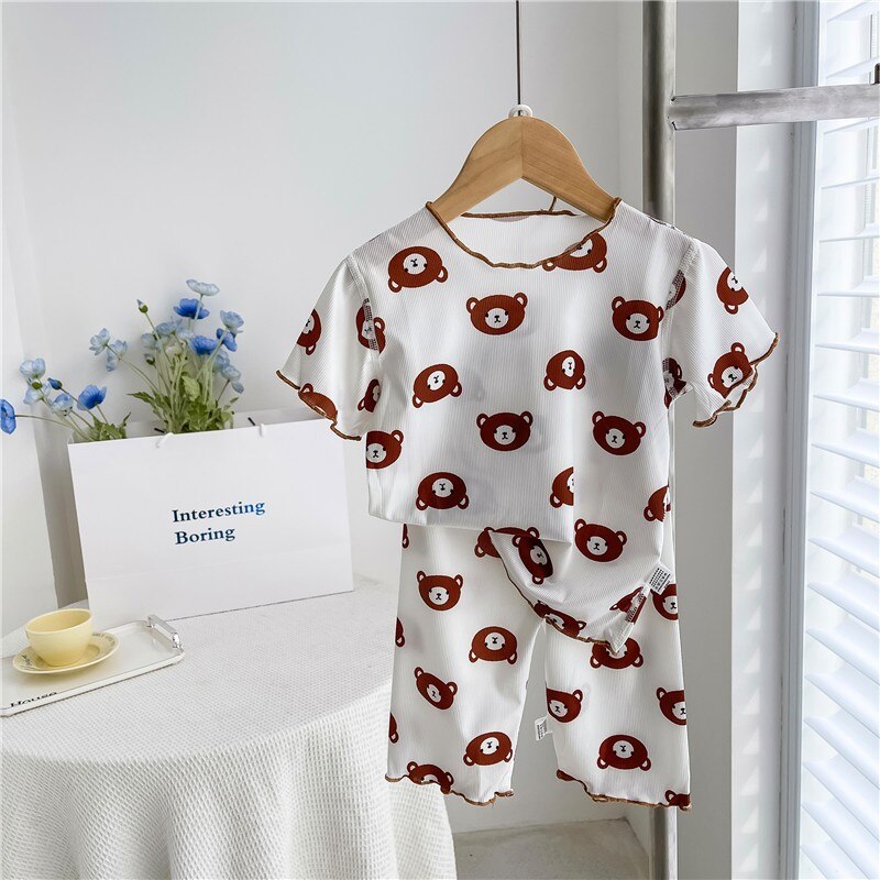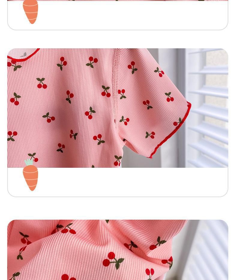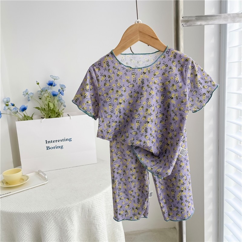 Милый Летний Тонкий Детский костюм-футболка с цветочным принтом для девочек, домашняя одежда, пижамы, одежда для отдыха с коротким рукавом для малышей, Корейская одежда