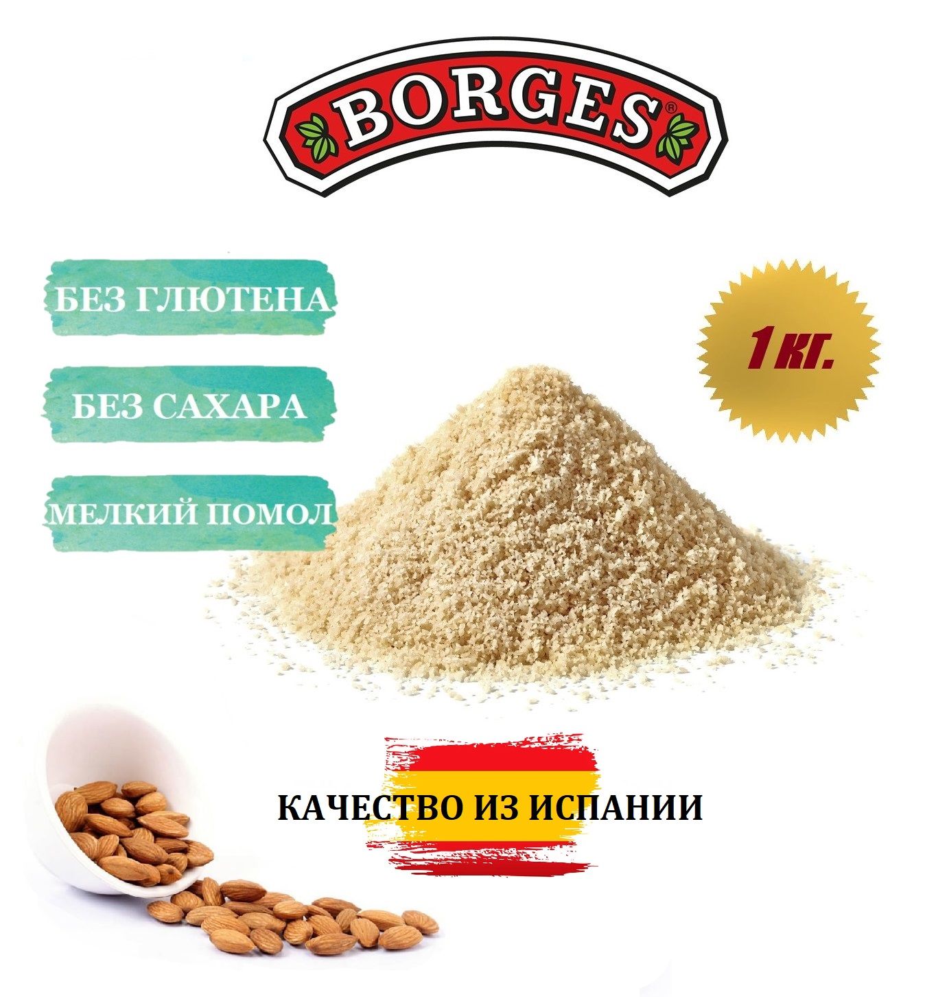 Миндальная мука Borges, 1 кг, мелкий помол из цельного миндаля, без глютена