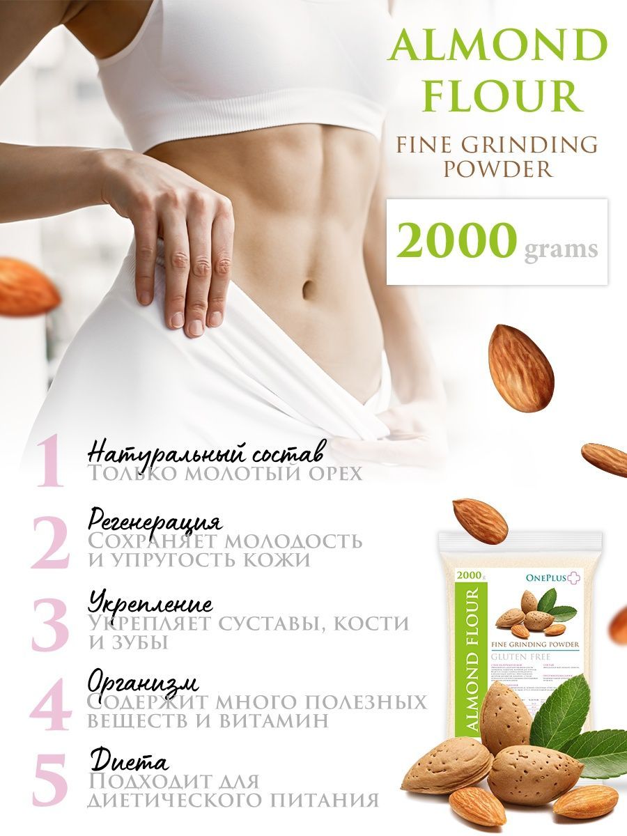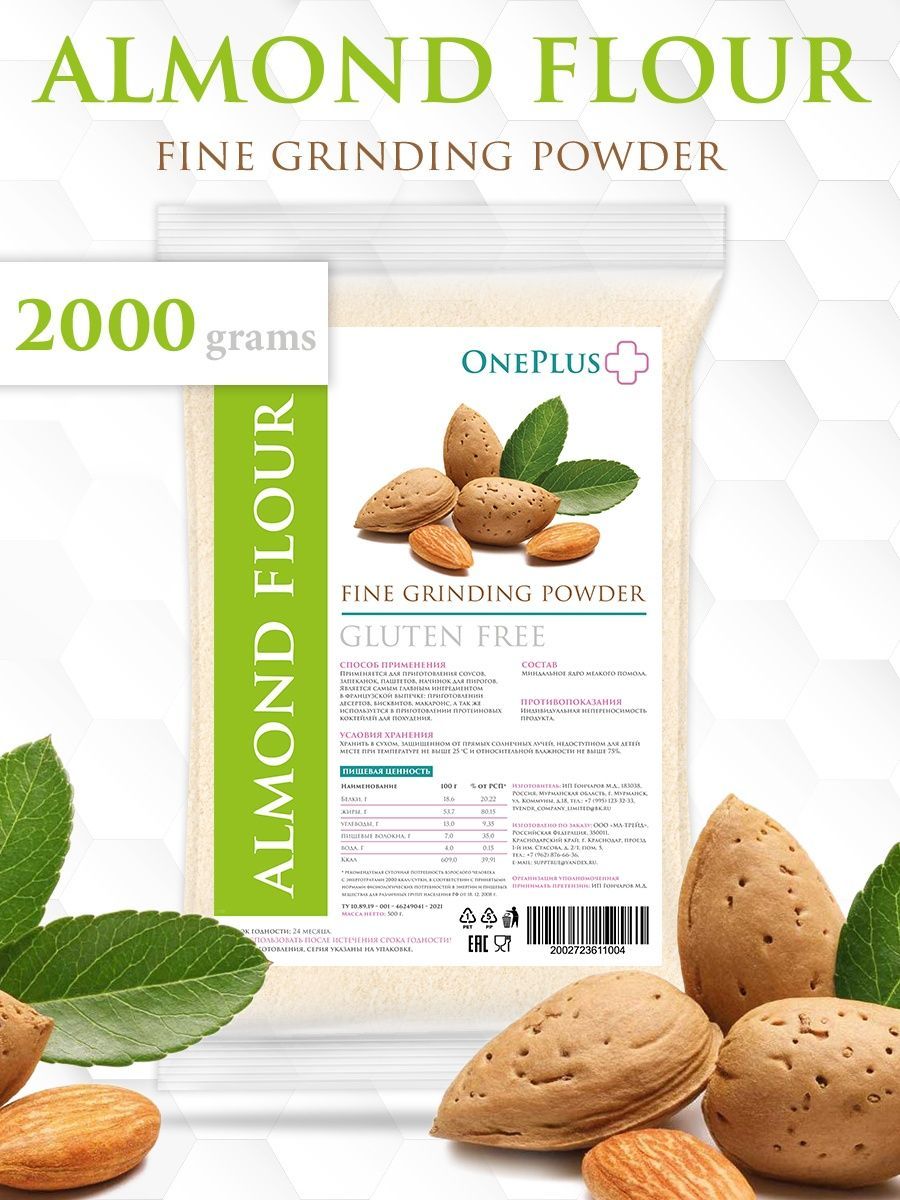 Описание: Миндальная мука One Plus есть не что иное, как перемолотый в мелкий порошок миндальный орех, один из самых вкусных представителей орехового братства. Лечебные свойства миндальной муки обусловлены её химическим составом, в котором содержатся: насыщенные жирные кислоты, холин, бета-каротин, витамины В1, В2, В5, В6, В9, А, С, Е и РР, а также калий, кальций, магний, цинк, селен, медь и марганец, железо, хлор и сера, йод, хром, фосфор и натрий. Миндальная мука не только вкусна, но и чрезвычайно полезна, её рекомендуется употреблять при нарушении зрения, бессоннице, малокровии и судорогах. Мука миндальная мелкого помола без глютена идеальна для выпечки, десертов (макаронс, марципана, бисквитов, печенья) и для загущения соусов и крем-супов. Мука из миндаля это и правильное питание, спортивное питание для похудения и незаменимый компонент, чтобы приготовить кондитерский крем, протеиновый коктейль, коктейль для похудения и спорт питание. Веганский продукт, отлично подходит для кето диеты, без консервантов, без добавок, без ГМО.