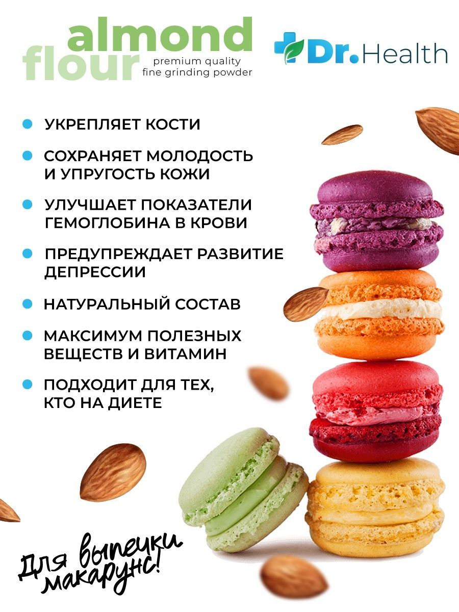 Описание: Миндальная мука Dr. Health есть не что иное, как перемолотый в мелкий порошок миндальный орех, один из самых вкусных представителей орехового братства. Лечебные свойства миндальной муки обусловлены её химическим составом, в котором содержатся: насыщенные жирные кислоты, холин, бета-каротин, витамины В1, В2, В5, В6, В9, А, С, Е и РР, а также калий, кальций, магний, цинк, селен, медь и марганец, железо, хлор и сера, йод, хром, фосфор и натрий. Миндальная мука не только вкусна, но и чрезвычайно полезна, её рекомендуется употреблять при нарушении зрения, бессоннице, малокровии и судорогах. Мука миндальная мелкого помола без глютена идеальна для выпечки, десертов (макаронс, марципана, бисквитов, печенья) и для загущения соусов и крем-супов. Мука из миндаля это и правильное питание, спортивное питание для похудения и незаменимый компонент, чтобы приготовить кондитерский крем, протеиновый коктейль, коктейль для похудения и спорт питание. Веганский продукт, отлично подходит для кето диеты, без консервантов, без добавок, без ГМО.