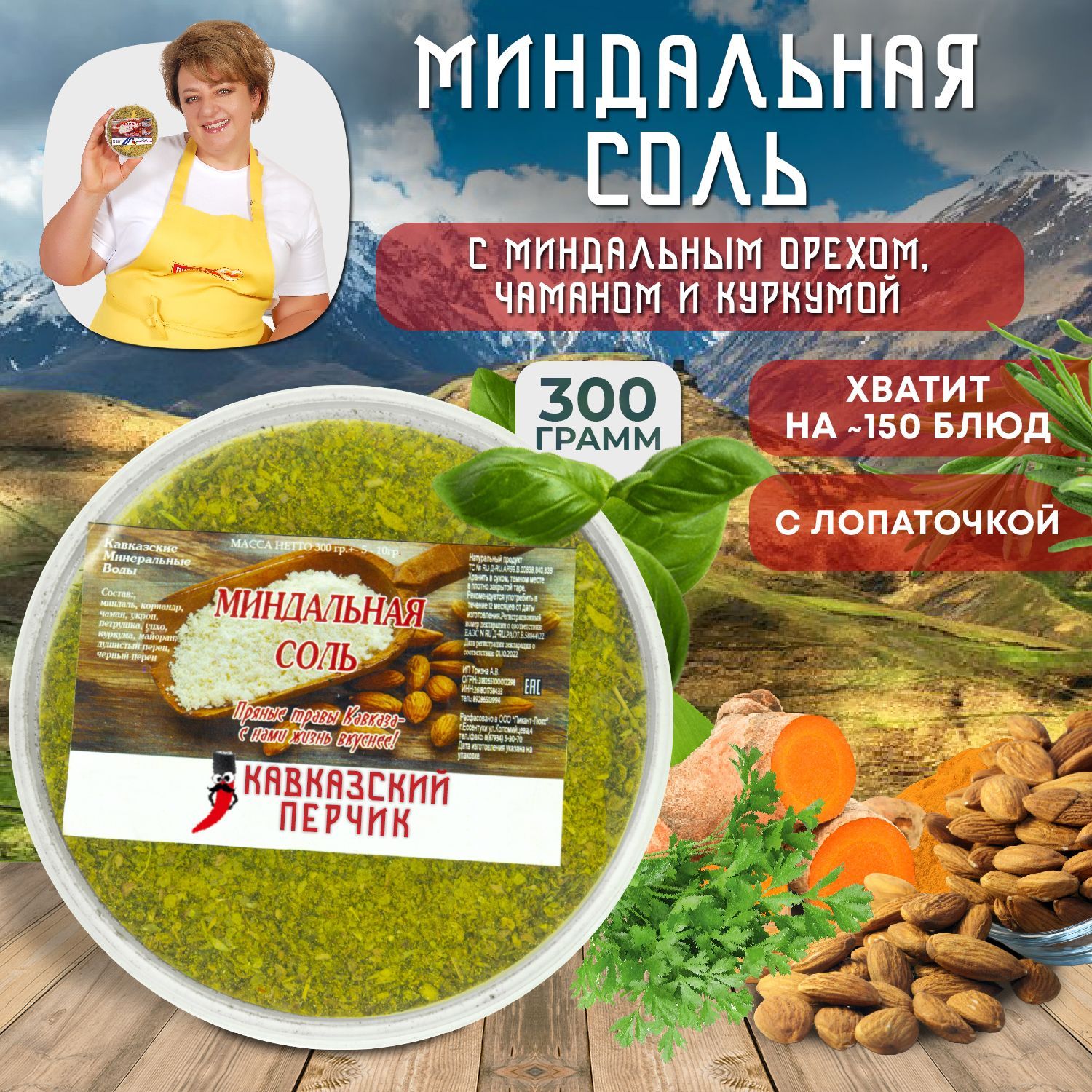 Миндальная ореховая соль, 300гр / Смесь приправ с миндалём, чаманом и куркумой для курицы, рыбы, мяса, овощей / Кавказские специи