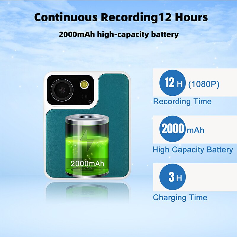 4. Встроенный литий-ионный аккумулятор емкостью 2000 мАч обеспечивает около 12 часов непрерывной записи видео при 1080p30.