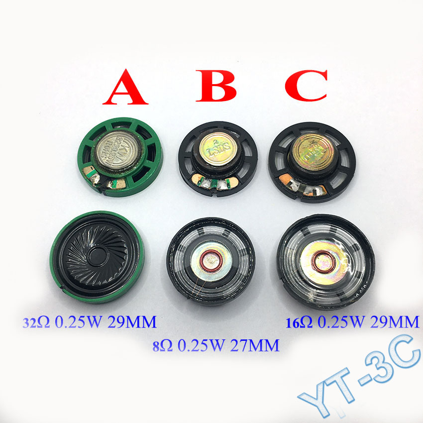 5 шт., 8, 16, 32 Ом, 0,25 Вт, 27 мм, 29 мм, мини-рог, громкий динамик, диаметр, ультра-тонкий маленький динамик, зуммер для дверного звонка, домофон, игрушки