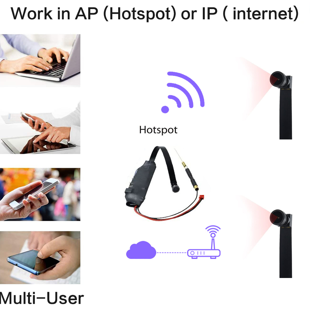 Мини-камера высокой четкости: оснащена ультра-мини-камерой высокой четкости, которая поддерживает разрешение видео и изображения до 1920*1080 пикселей. Функция H.264 (сжатый формат) обеспечивает отличную производительность и стабильность.