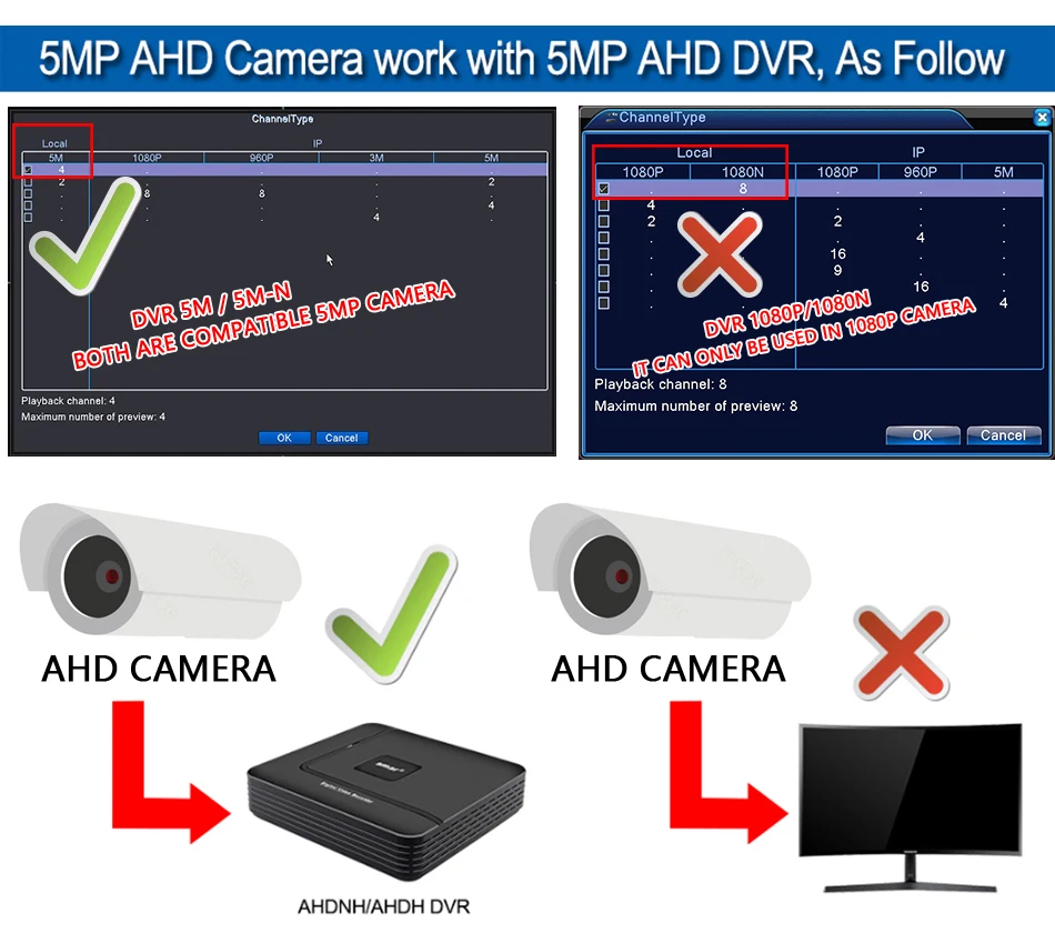 DVR: AHD-5MP-N / AHD-5M / AHD-5MP-P = МОЖЕТ БЫТЬ СОВМЕСТИМ С ЕГО