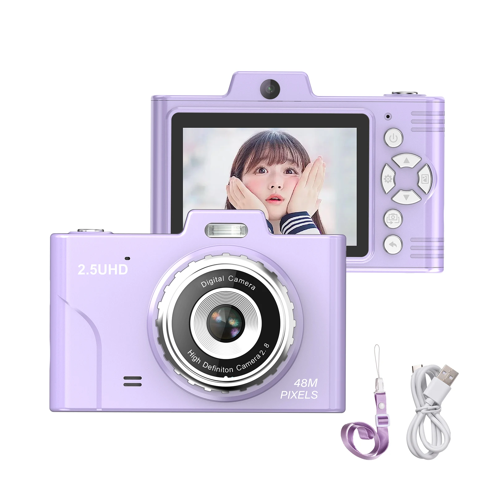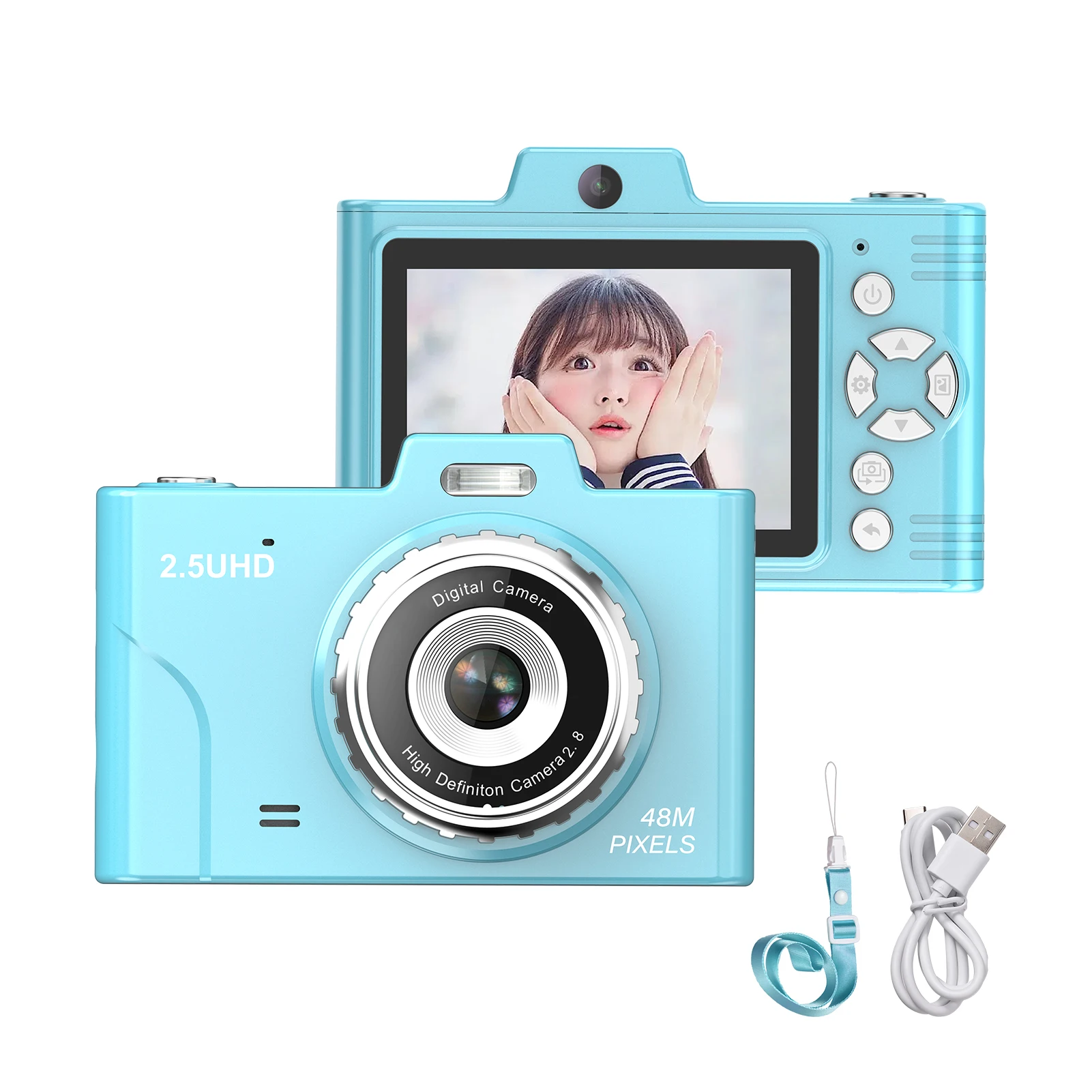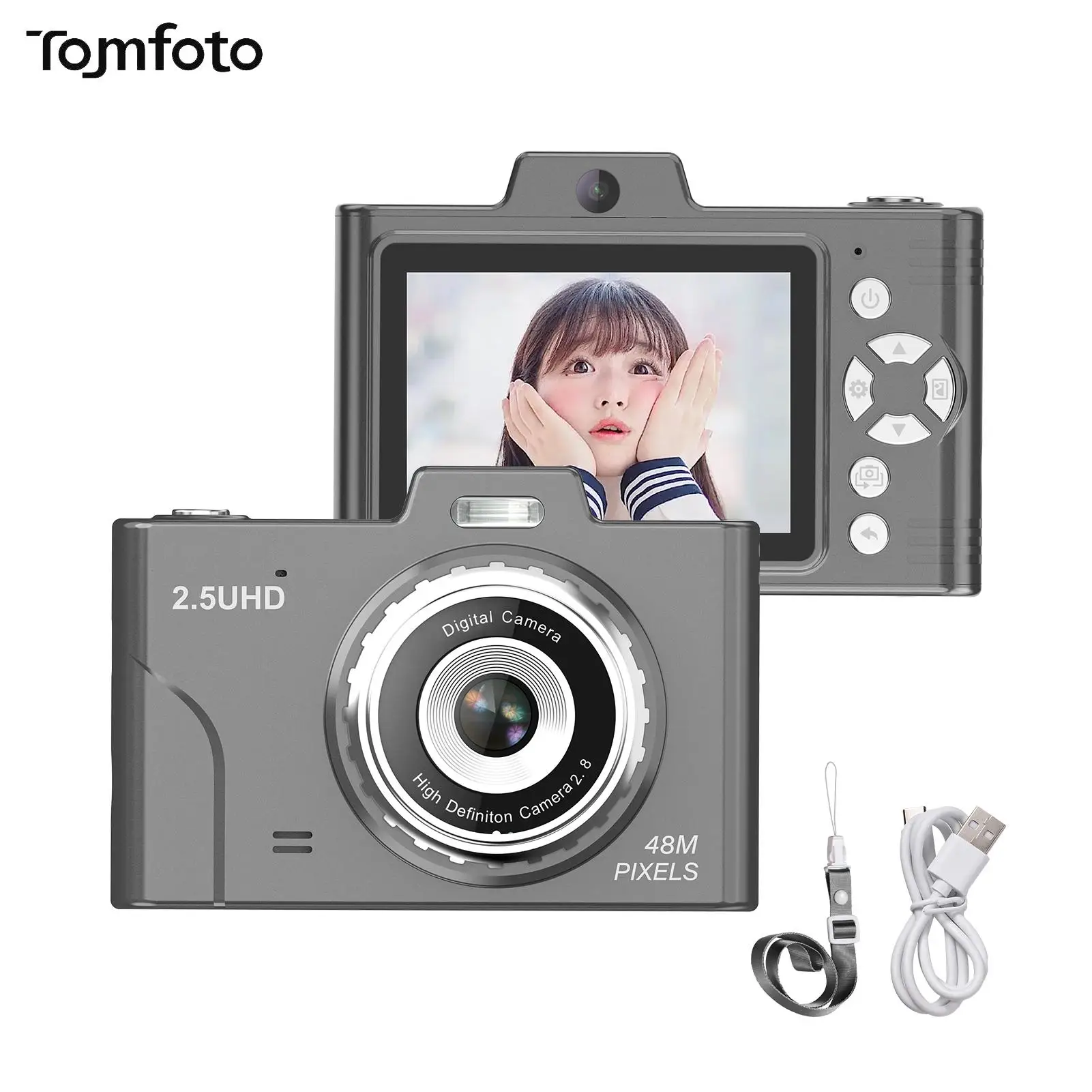 【Простая переноска】 Благодаря поддержке OTG вы можете легко переносить фотографии на свой телефон, что упрощает обмен любимыми моментами с друзьями и семьей. Кроме того, компактная цифровая камера поддерживает хранение карт TF, что позволяет легко переносить фотографии на компьютер.