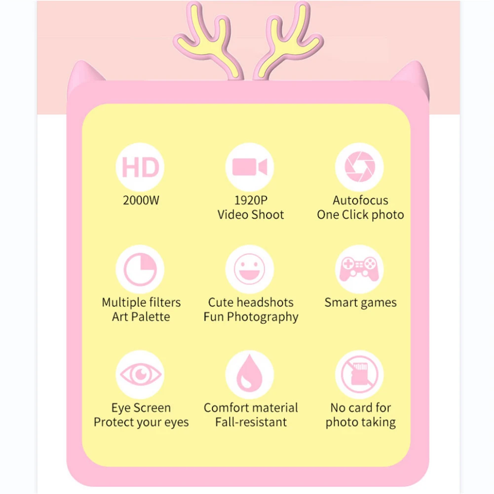 Функции продукта: фотосъемка (селфи/таймер), видео, игры, фото-наклейки;