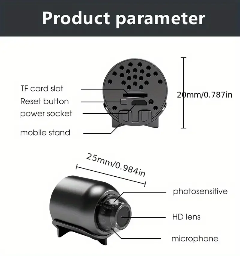Материал: АБС-пластик Цвет: черный Размер: 3,8*3*3 см (из-за ручного измерения возможна погрешность в 1-3 мм.) Формат видео записи: TF-карта AVI: Поддержка 8-128 ГБ (камера не включает TF-карту) Объектив: широкоугольный Режим питания: блок питания Power Bank, бытовой блок питания. Разрешение: 1920*1080P Операционная система: Andriod/IOS Функция: обнаружение движения, удаленный просмотр, запись по тревоге, циклическая запись, многопользовательский просмотр. * Добро пожаловать в оптовую и прямую поставку, вы будете покупать напрямую на нашем заводе. Пожалуйста, не стесняйтесь обращаться к нам, если у вас есть какие-либо вопросы!