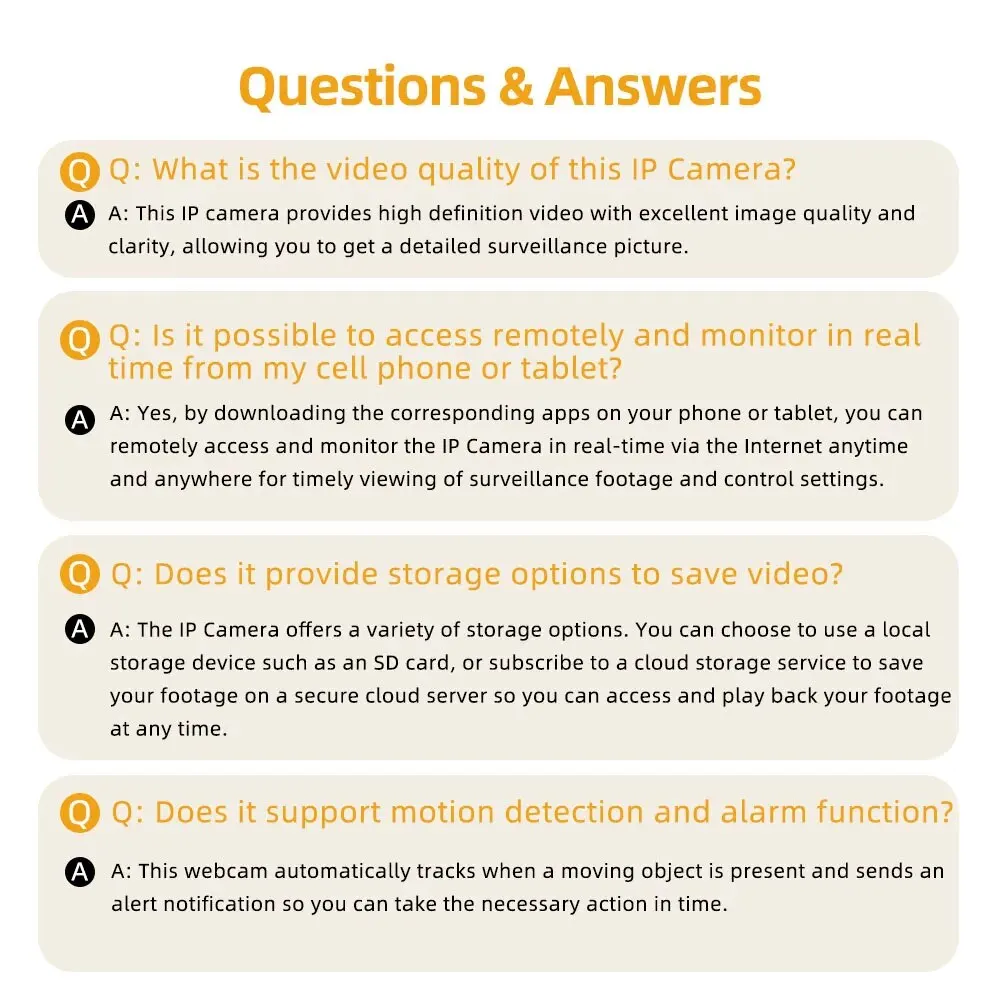 【Независимость】 Эта Беспроводная IP-камера может работать с Wi-Fi (только Wi-Fi 2,4 ГГц) или без Wi-Fi. Когда он работает без Wi-Fi, вставьте TF-карту (TF-карта не входит в комплект) и включите, камера будет записывать и сохранять видеофайлы на SD-карту (SD-карта не входит в комплект).