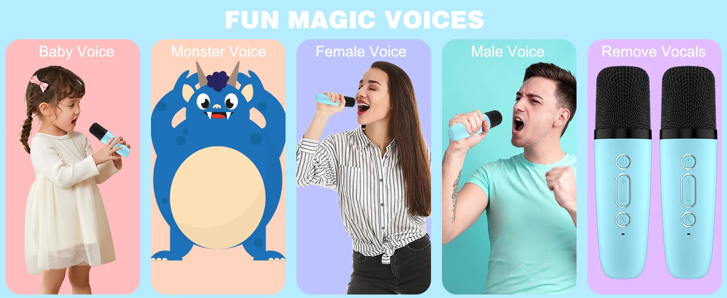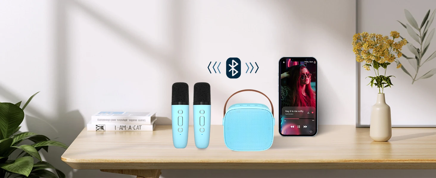 【Простота использования】: детский караоке-аппарат включается при автоматическом подключении к динамикам. Наш портативный динамик Bluetooth и беспроводной микрофон со встроенной аккумуляторной батареей могут работать в течение 6-8 часов при полной зарядке.