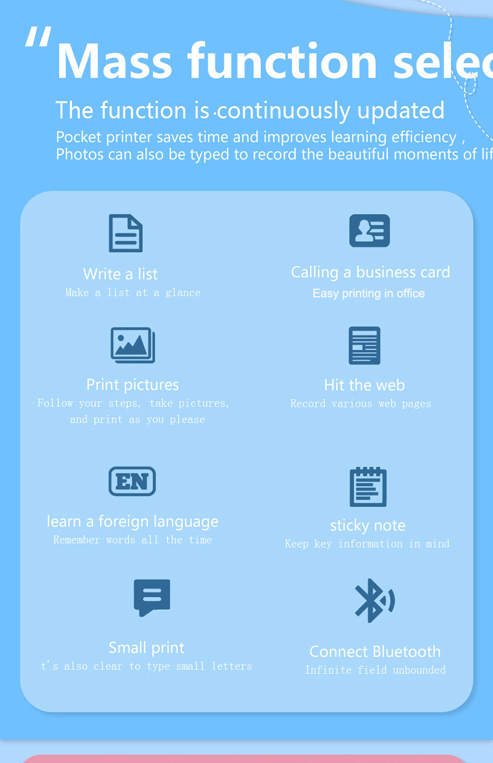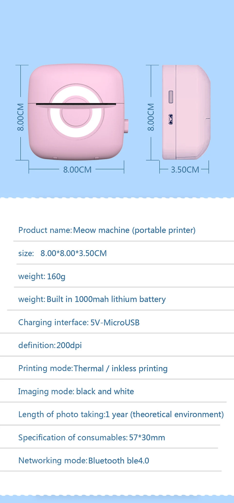 Мини карманный термопринтер портативный Bluetooth Inkless принтер для рабочего стола