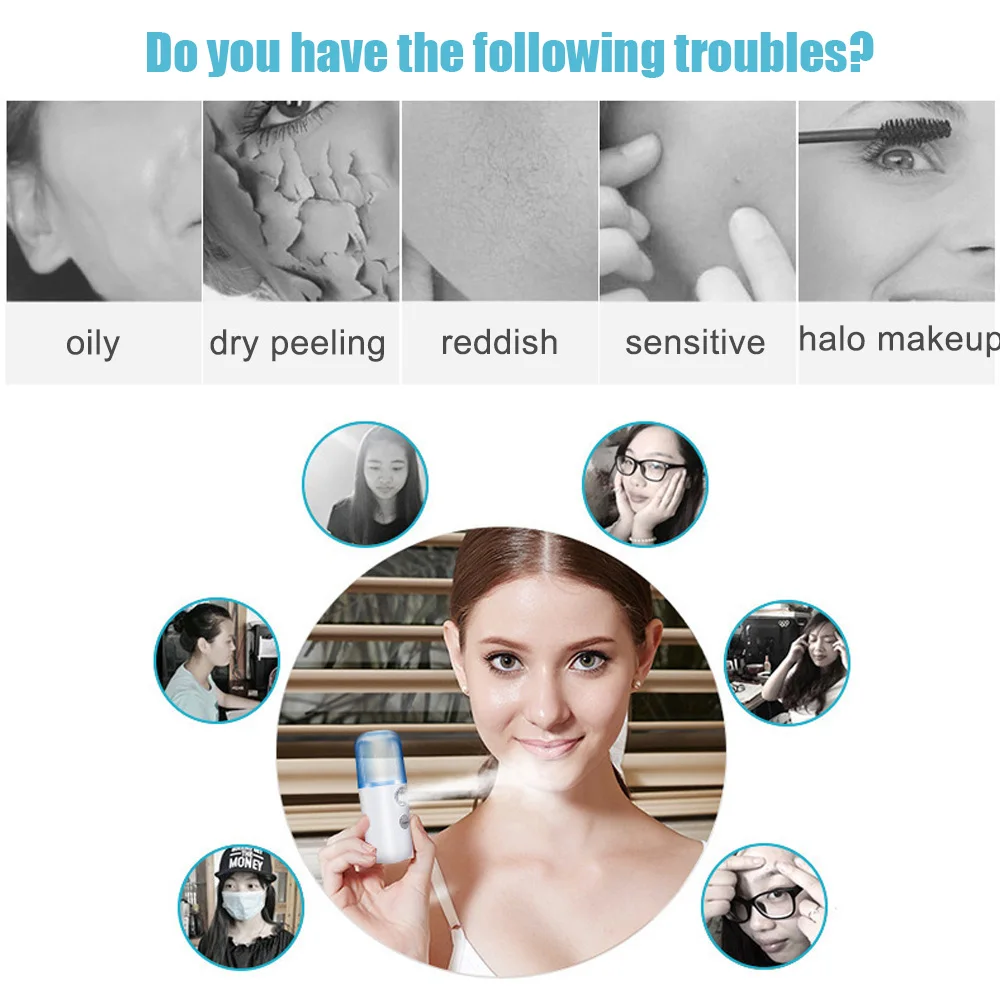 Дропшиппинг 30 мл мини нано-распылитель для лица небулайзер отпариватель для лица увлажнитель воздуха портативный увлажняющий антивозрастной морщин женщины красота уход за кожей оптовая продажа