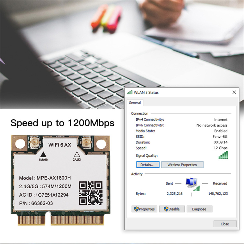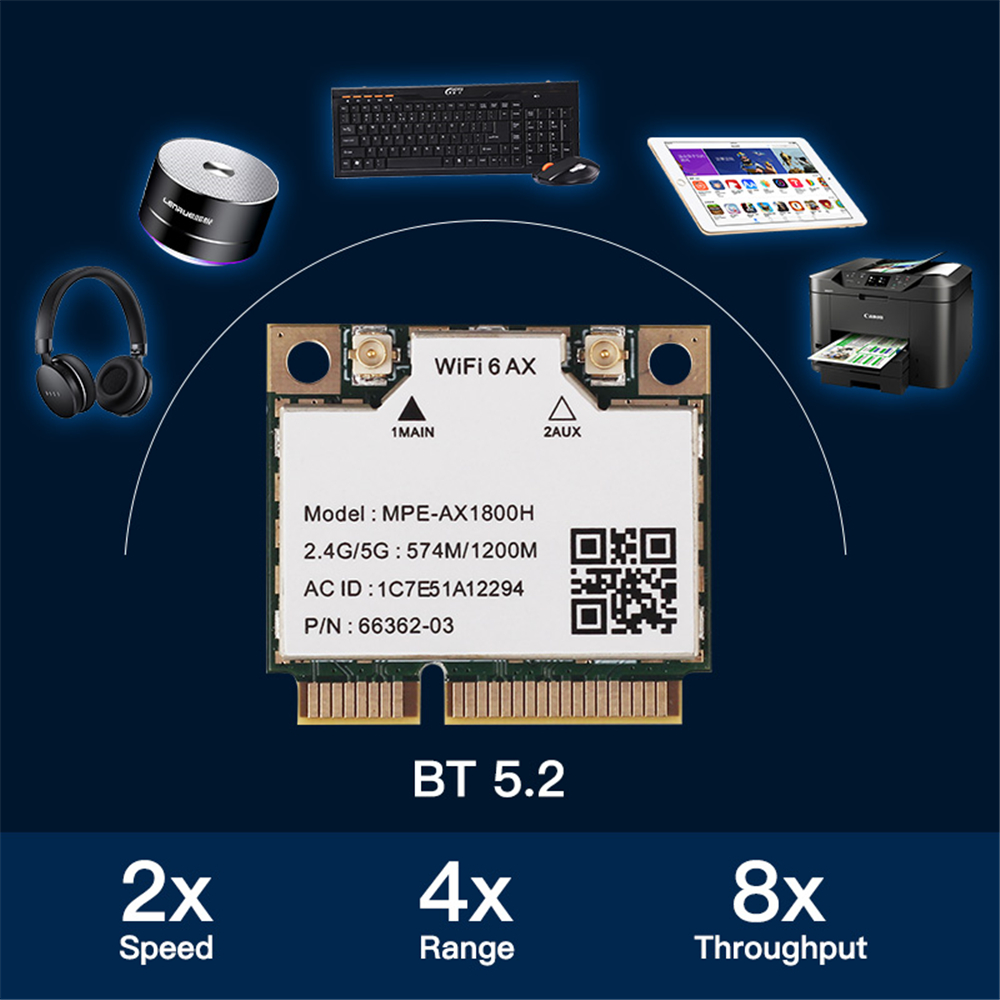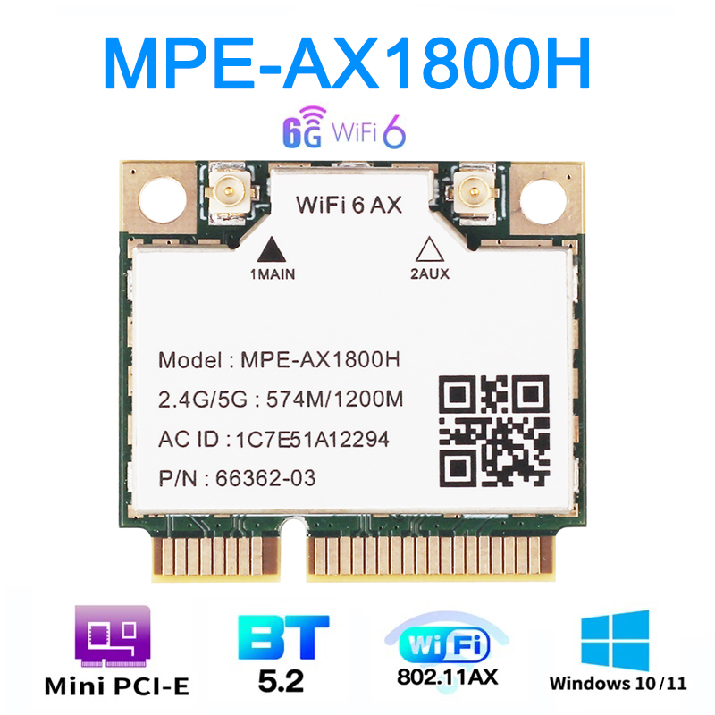 Wi-Fi 6 MT7921 двухдиапазонный Wi-Fi 6 Bluetooth 5,2 карта 1800Mbps для мини-адаптера pcie беспроводной адаптер 2,4G/5 ГГц для ноутбука/ПК