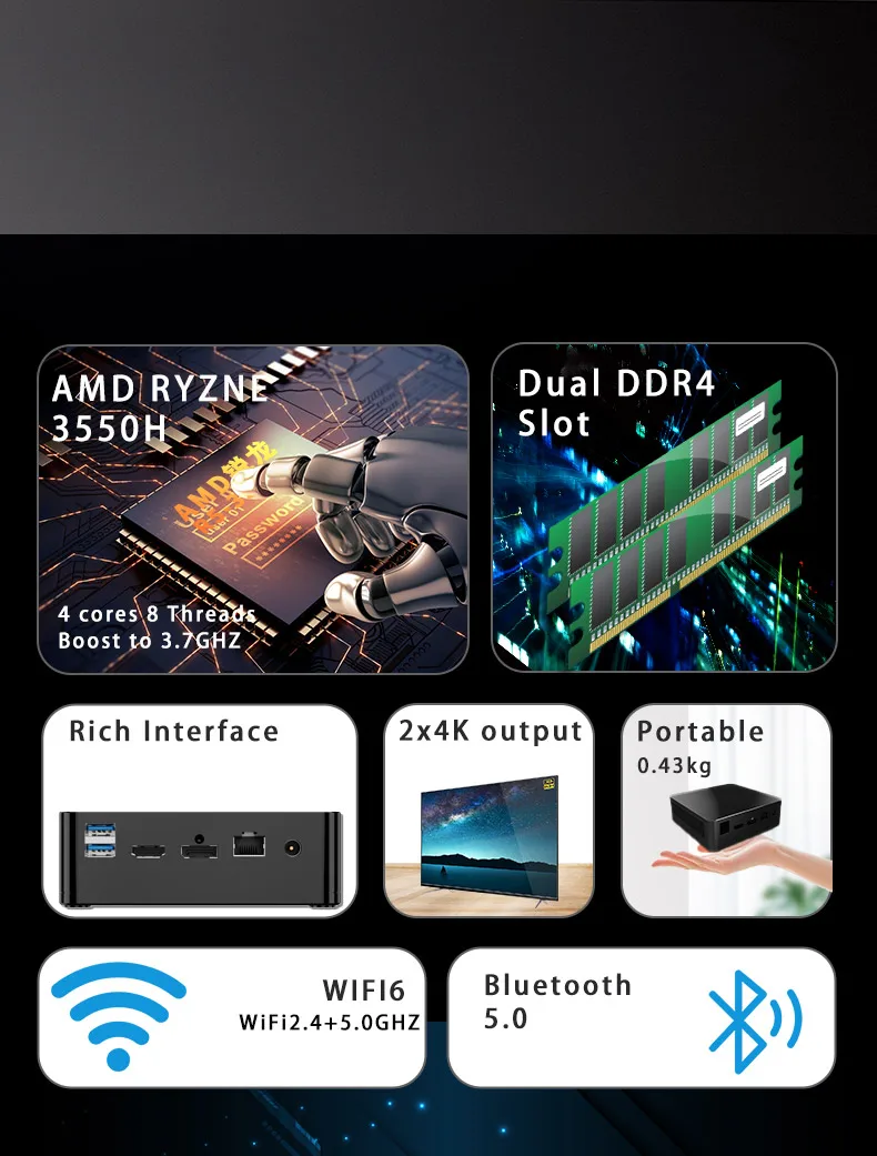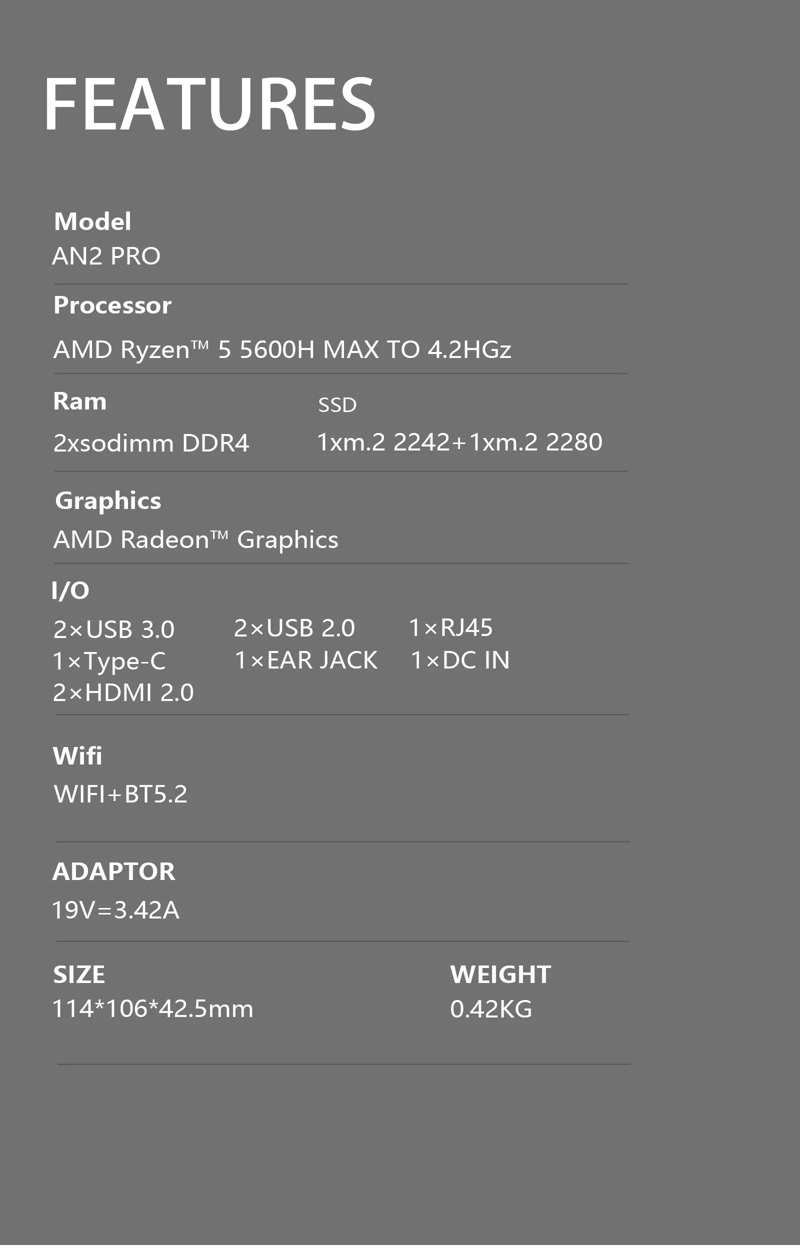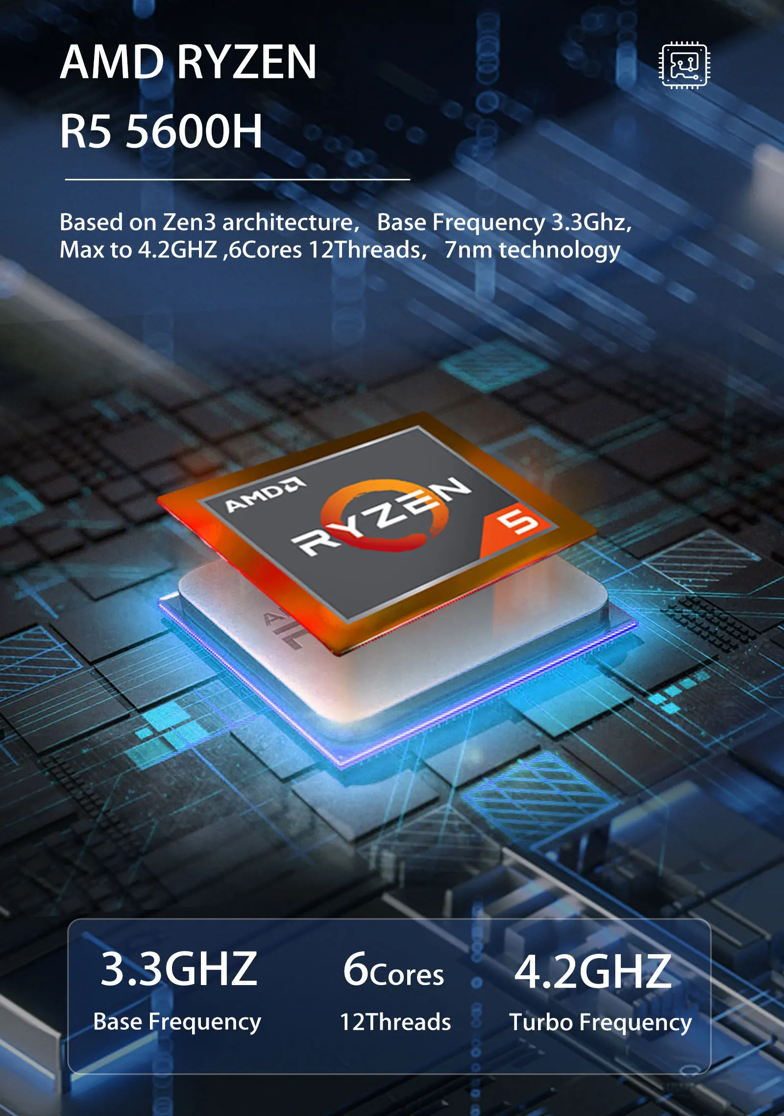 Мини-ПК Chatreey AN2P Ryzen 5 5625U 5600H, игровой настольный компьютер NVME SSD WIFI6 HDMI DP Windows 11 Pro