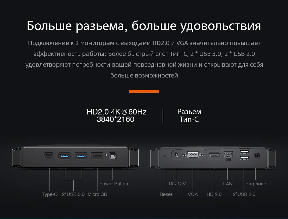 Информация о хранении: фактическая доступная внутренняя память может отличаться в зависимости от конфигурации программного обеспечения вашего мини-ПК.