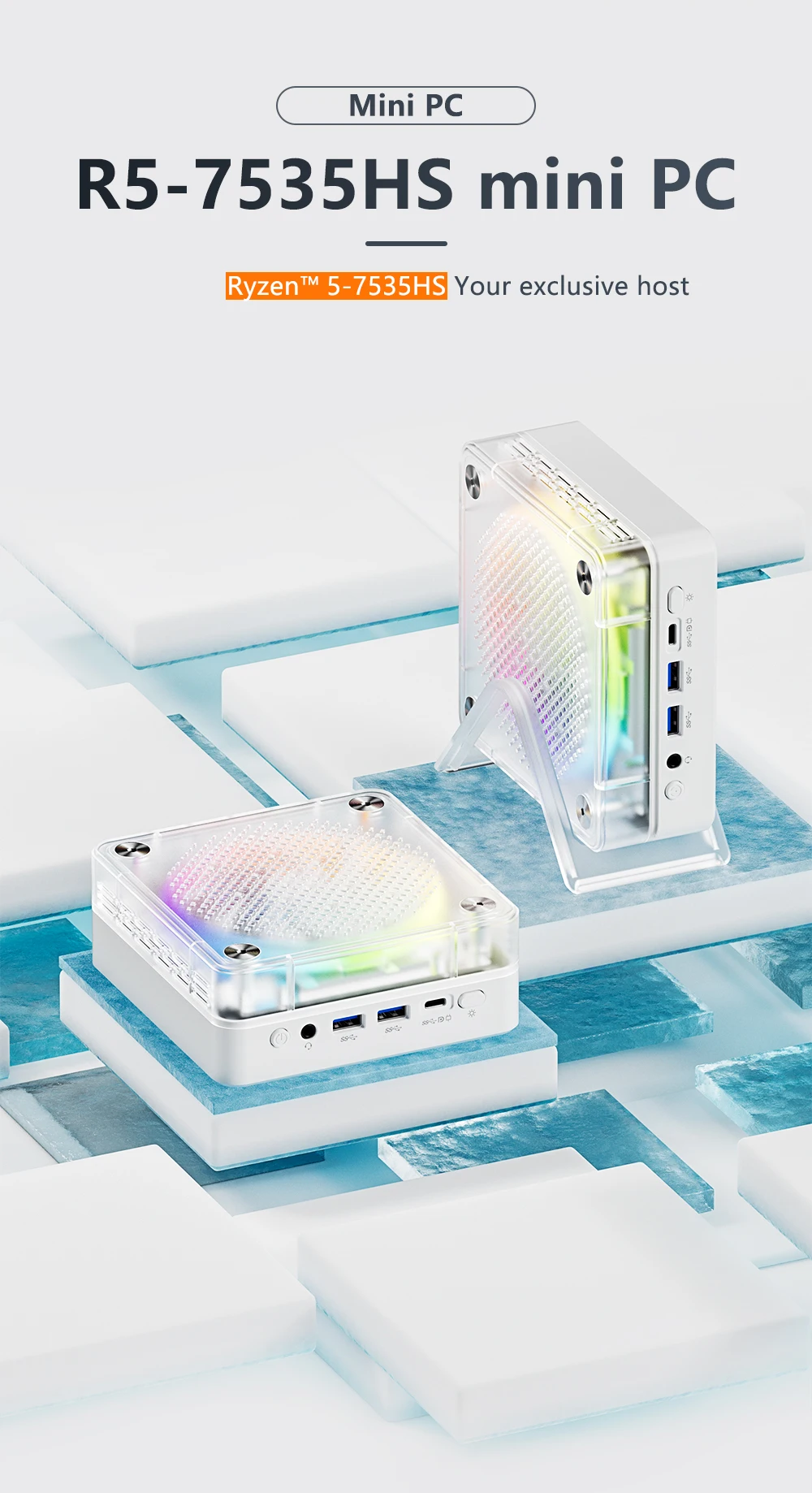 GenMachine AMD Ryzen 5 7535HS Легкий мини-ПК с Windows 11 Pro 8 ядер DDR5 4800 МГц 256/512 ГБ SSD WIFI6 BT5.2 Настольный игровой компьютер