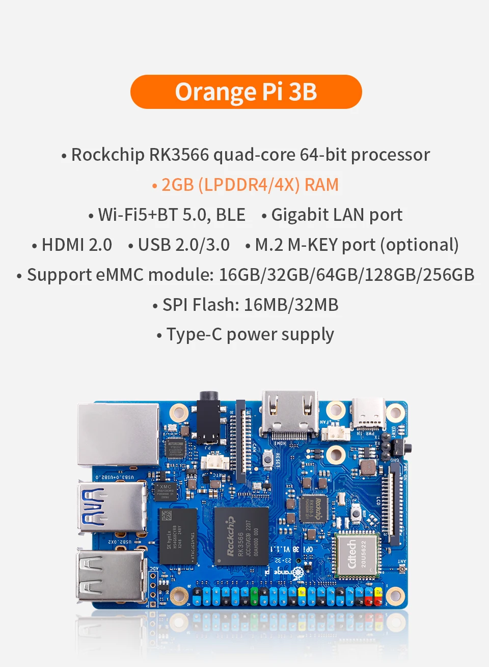 Мини-ПК Orange Pi 3B, 2 Гб ОЗУ, Rockchip RK3566, четырехъядерный, 64 бит, SBC, одна плата, Wi-Fi + BLE Gigabit Run, Android, Linux, OpenHarmony OS