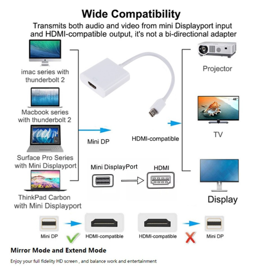 Легкий и портативный адаптер для подключения Mini DisplayPort (Mini DP или mDP)/Thunderbol 2 совместимого с портом компьютера к HDTV, монитору или проектору с HDMI; требуется отдельный кабель HDMI (не входит в комплект)