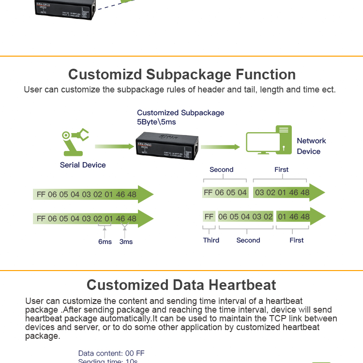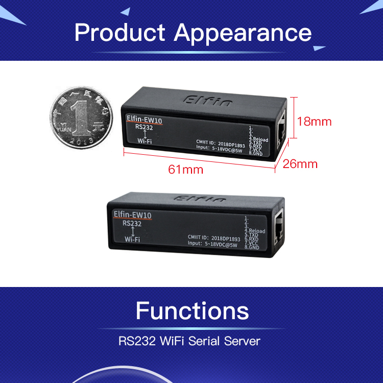 Elfin-EW1X последовательный сервер дляПередача данных через Wi-Fi, Что делает преобразование данных очень простым.