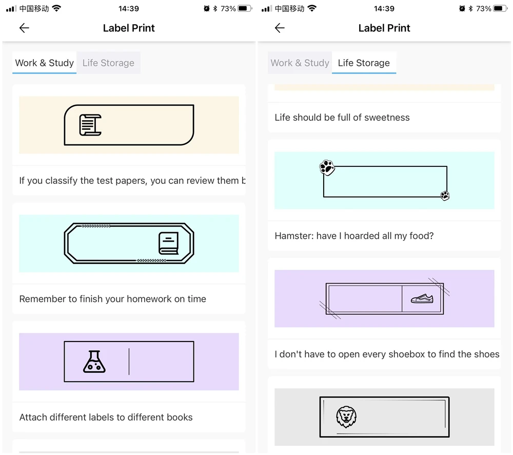 Поддержка нескольких функций, он может печатать фотографии, этикетки, сообщения, списки, записи, QR-код, веб-печать и так далее. Приложение предлагает множество шрифтов и тем, чтобы сделать ваши фотографии стильными.