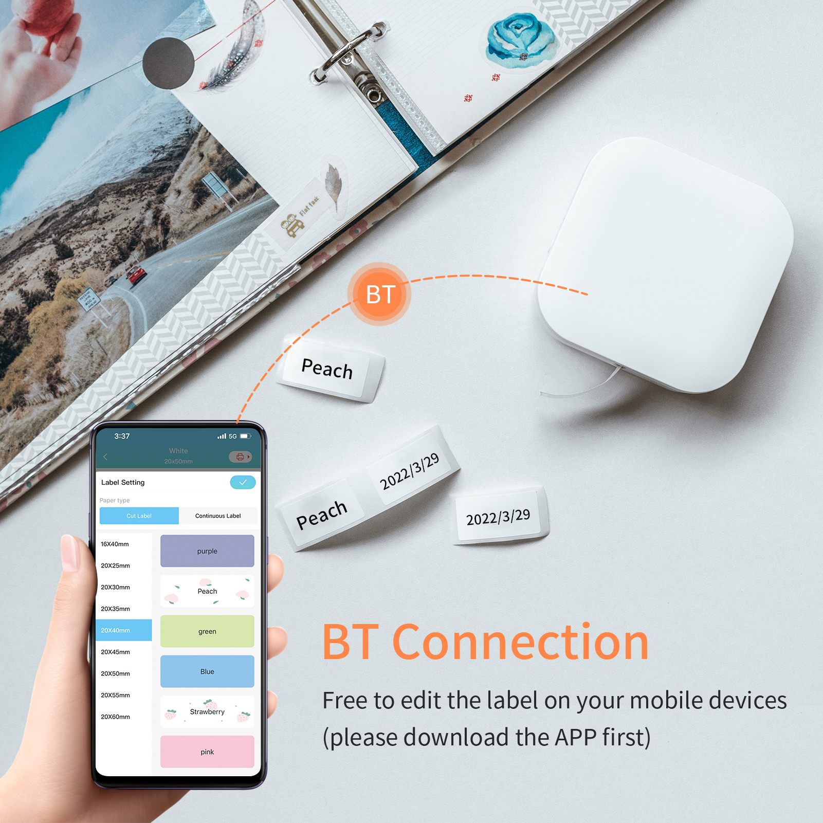 Удобно печатать-подключение через BT к вашему телефону, совместимое с системами Android и iOS. Найдите «Print Master» в Google App Store или App Store для загрузки. Тогда не стесняйтесь создавать и печатать наклейку в любое время.