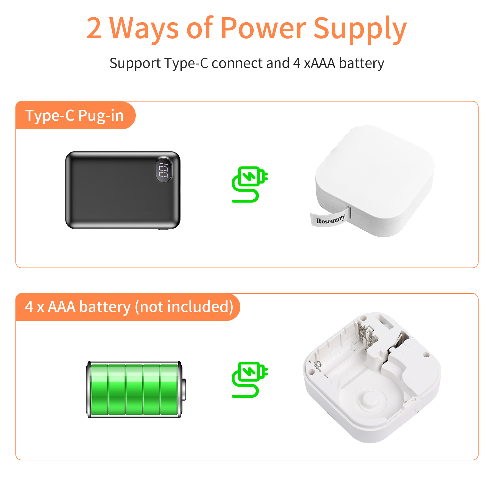 Экономьте больше денег-Обновленная новая версия этикетировочной машины может использовать плагин Type-C или 4 батарейки AAA. Теперь вы можете печатать где угодно. Отличная производительность-разрешение печати 203 точек на дюйм, низкий уровень шума печати, принтеру не нужен чернильный картридж при использовании, низкие эксплуатационные расходы.