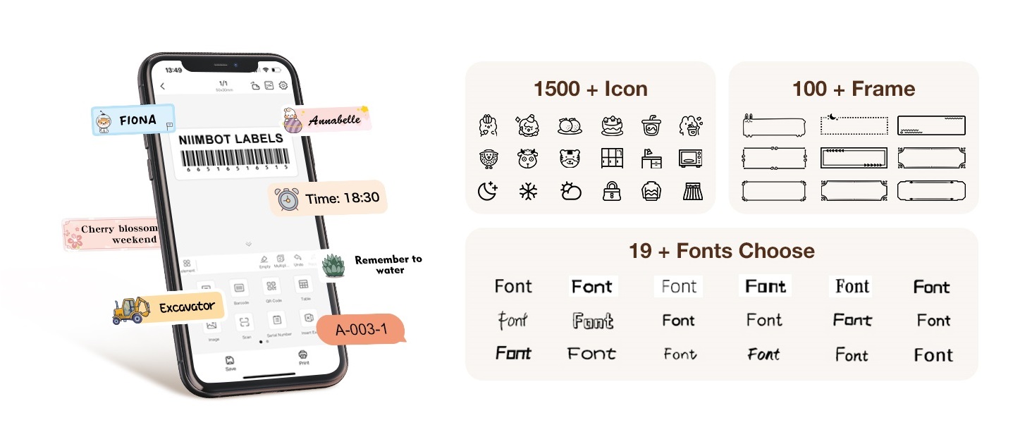 Простота использования-Этот мини-принтер этикеток Bluetooth печатает наклейки по беспроводной сети. Загрузите приложение «NIIMBOT», а затем подключите и Выполните сопряжение Bluetooth через приложение. Приложение включало более 60 + шрифтов, 12 + языков и 400 + границ. И он поддерживает iOS и Android. (ПРИМЕЧАНИЕ: этот производитель этикеток не работает с компьютерами)