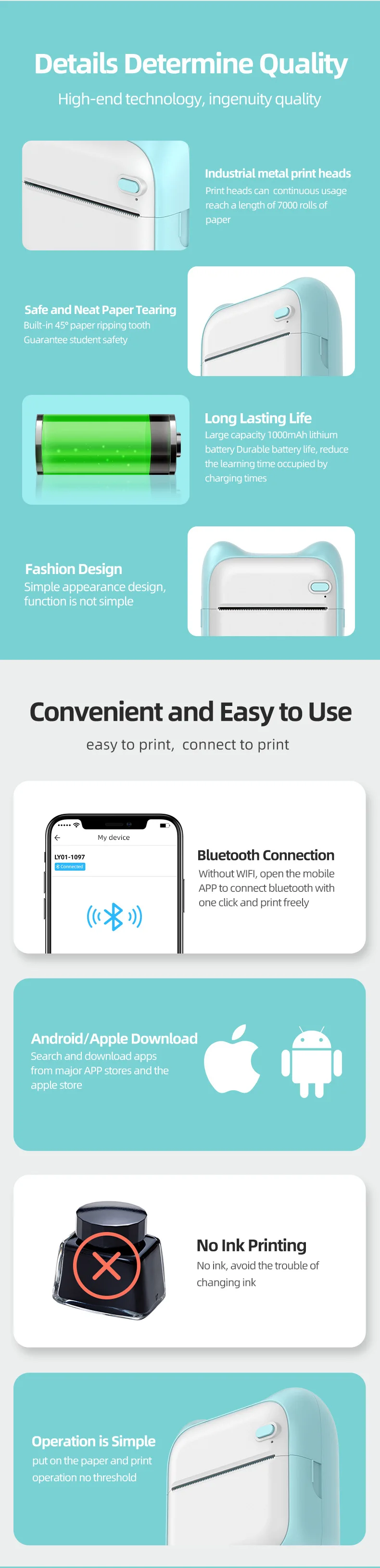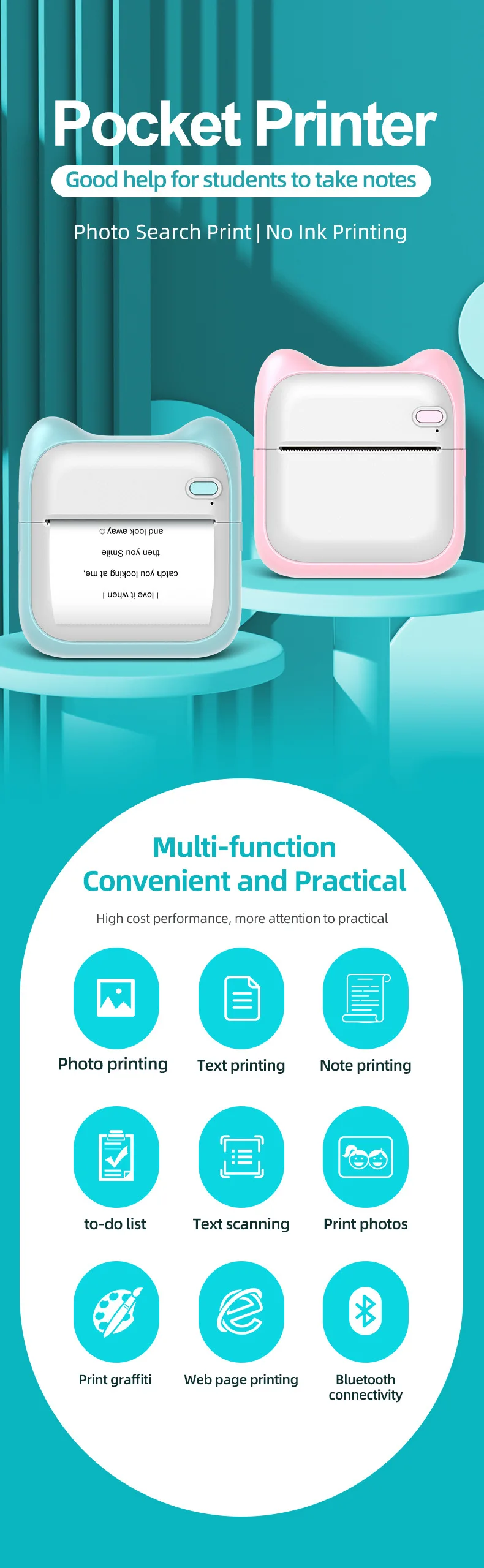 Мини Bluetooth WiFi Новый Неправильный Принтер Мобильный Телефон Фото Название Примечание Горячая Печать