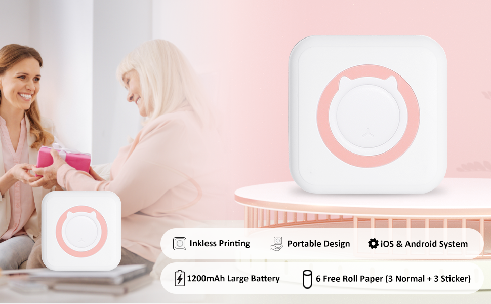 Мини-принтер с беспроводным Bluetooth портативным термопринтером